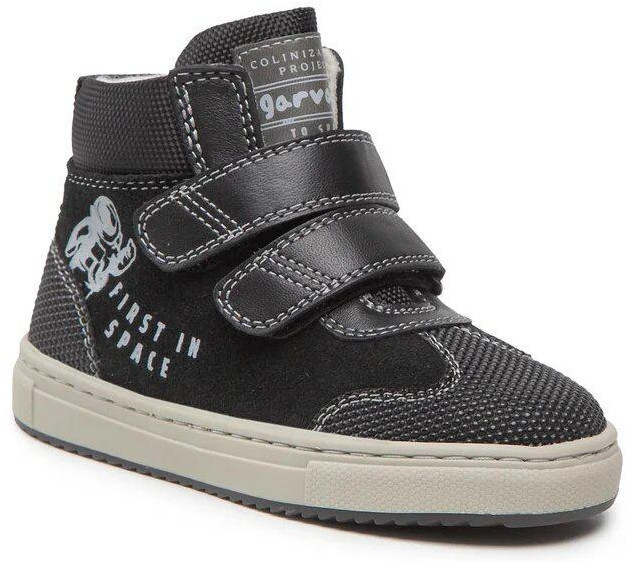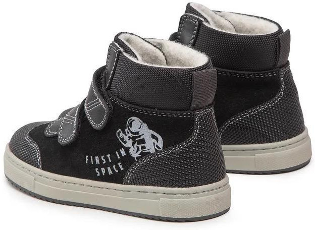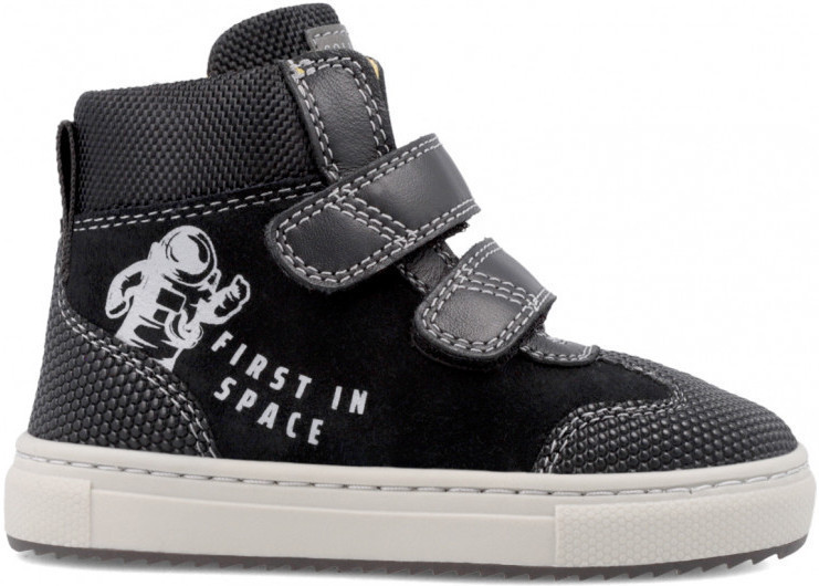 Удобные утепленные ботинки для повседневной носки. Производство Испания. Застегиваются на липучки. Веселый принт с космическим мотивом и надписью «First in Space» (Первый в космосе). Внешняя отделка из натуральной кожи высшего качества. Внутренний подклад и стелька из флиса из натуральной овечьей шерсти. Усиленная защита носовой и пяточной зоны прорезиненным пузырьковым протектором. Производство без применения никеля, хрома и прочих вредных соединений. Дышащая кожа и гипервентиляция сохраняют комфортную температуру, чтобы ножка не потела. Специальная подошва, особая легкость и гибкость для активных, естественных движений, мягкое удобное исполнение делают обувь подходящей для прогулок и длительной ежедневной носки.