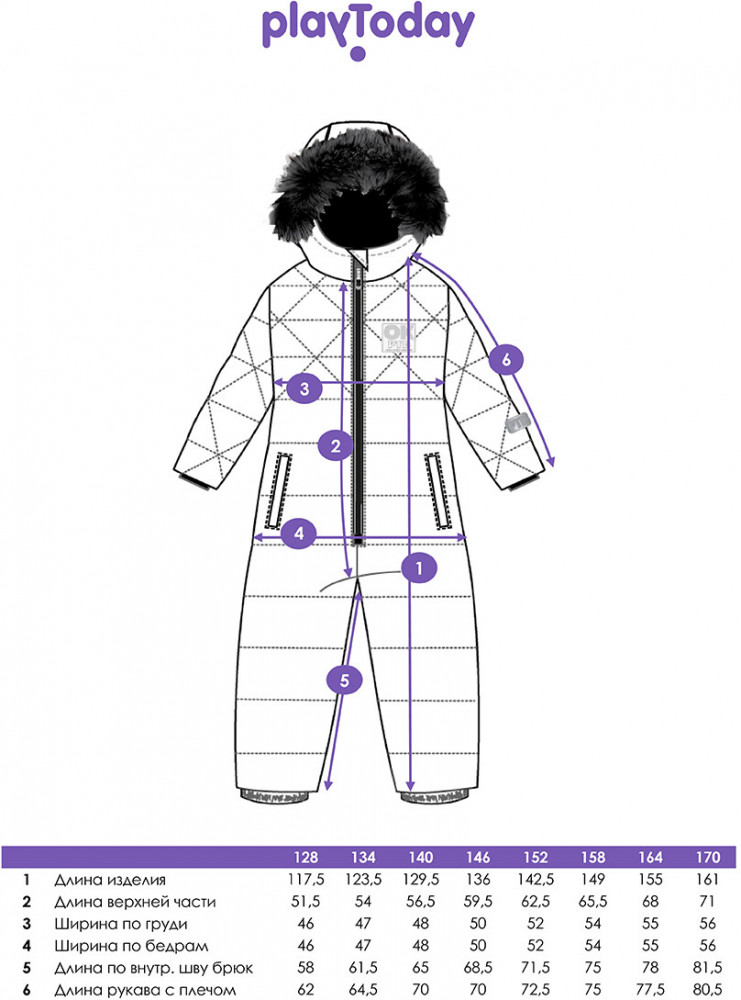 Пожалуйста, обратите внимание, что указанный температурный режим является приблизительным и зависит от многих факторов, таких как возраст, физическое состояние, уровень активности ребенка и количество слоев одежды. Время, проведенное на открытом воздухе, и погодные условия, такие как холодный ветер, могут повлиять на тепловые характеристики изделия. Убедитесь, что защищены от холода голова, руки и ноги.