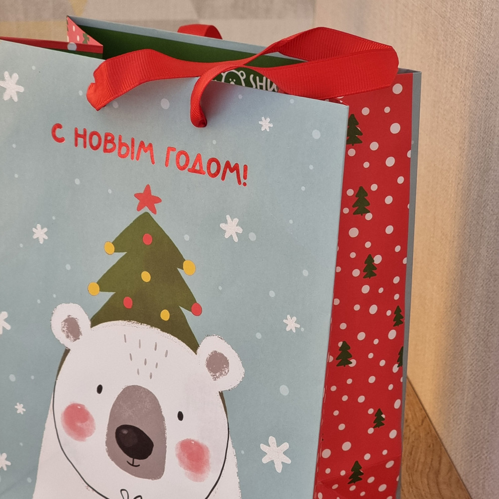 Милый праздничный дизайн подарочногр пакетика с полярной мишкой! 🎄 + переливающаяся надпись 😍