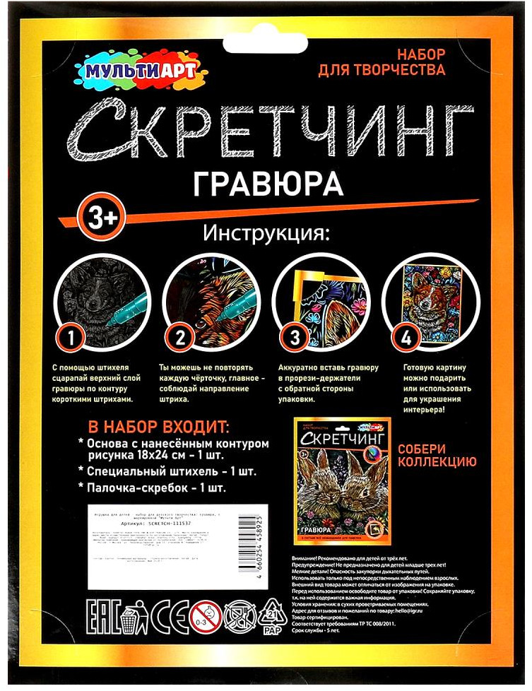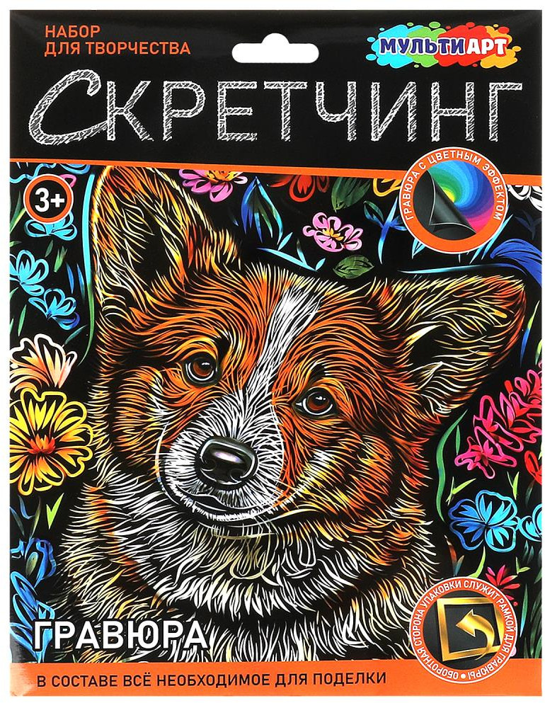 Набор для творчества — скретчинг гравюра «Корги» ТМ «Мульти Арт» — отличный подарок для ребёнка, который будет способствовать развитию его творческих способностей: