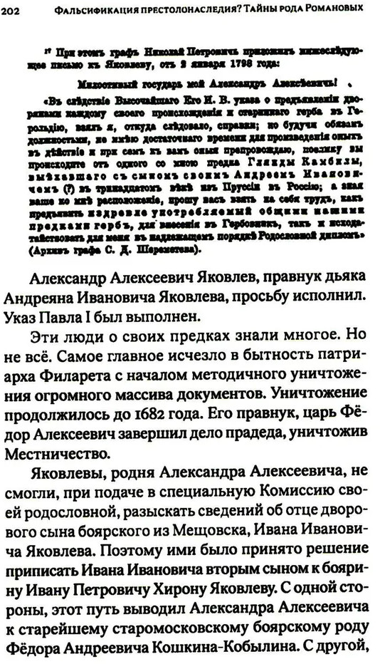 Фальсификация престолонаследия? Тайны рода Романовых. Новейшее документальное исследование. Книга 2В данный момент этот товар отсутствует в продаже. Возможно, у нас найдется аналогичный или похожий товар здесь. Во второй книге серии «Тайны рода Романовых» будет продолжен анализ событий из жизни и службы представителей двух братских ветвей старомосковского боярского рода Захарьиных-Кошкиных (Яковлевых и Юрьевых). Вы наглядно увидите, как в доставшемся нам кривом зеркале исторического наследия были представлены их деятельность и заслуги перед государством. Впервые при привлечении документов будет выстроена скрываемая от нас по сей день родовая ветвь потомков четвёртого сына боярина Якова Захарьевича Кошкина-Кобылина, дьяка великого князя Василия Ивановича III (отца Ивана Грозного) Ивана Яковля. Будут предъявлены документальные доказательства и того, как славных потомков этой ветви, защитников Руси, воевод, стольников, посмертно (задним числом) отлучили от рода боярина Ивана III, Якова Захарьевича. Мы увидим, как их беззастенчиво просто «впихнули» в род некоего Облагини. Получившийся в результате этой подтасовки, на деле никогда не существовавший род Яковлевых от Облагини, назвали вторым (наряду с Захарьиными-Яковлевыми) древним родом Яковлевых. Но именно среди древних родов повторяемость фамилий полностью исключалась институтом местничества. Не могло быть «вторых» Шуйских, Годуновых, Воротынских, Голицыных, Шереметевых и, конечно же, Яковлевых. |