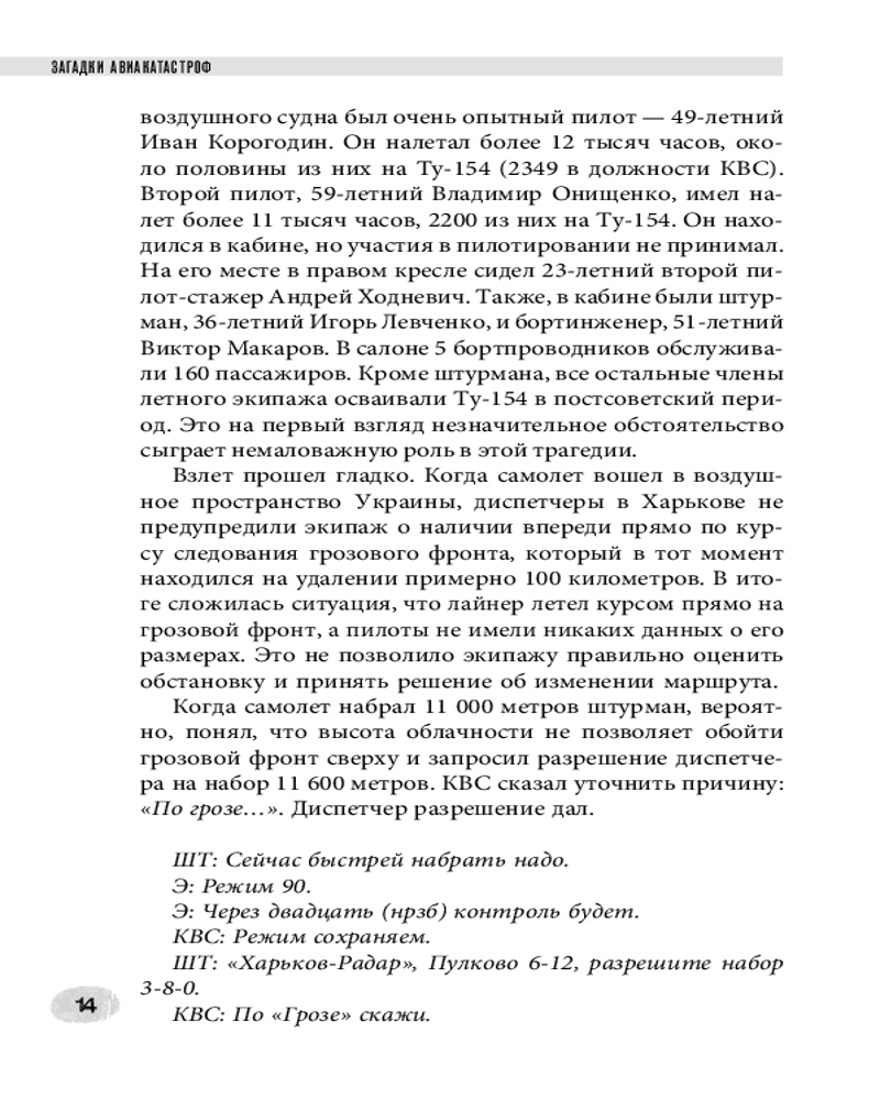 💳 Оплатить за товар можно при получении 🇰🇿 Есть бесплатная доставка по Казахстану от 1 дня 🎁 Копите бонусы с каждой покупки Серия: Криминология на пальцах По статистике, самолет — самый безопасный вид транспорта. Но каждая катастрофа заставляет миллионы людей в этом усомниться. За каждой трагедией есть история, которую хранит черный ящик. Авторы книги собрали под одной обложкой реальные истории о крушениях самолетов, произошедших в разные годы. Каждая глава — это не просто рассказ о трагедии, но и детальный анализ причин катастрофы, основанный на данных, полученных из тех самых черных ящиков, отчетов МАК, а также интервью с очевидцами и участниками событий. Да, кому-то удалось спастись даже при падении с высоты 10 000 метров. Особое внимание уделяется влиянию каждой аварии на совершенствование летных протоколов и повышение безопасности полетов. Вы узнаете, как действия или бездействие могут повлиять на весь экипаж, как важен правильный режим для пилотов, о чем говорят пилоты и диспетчеры и как устроена авиация. |