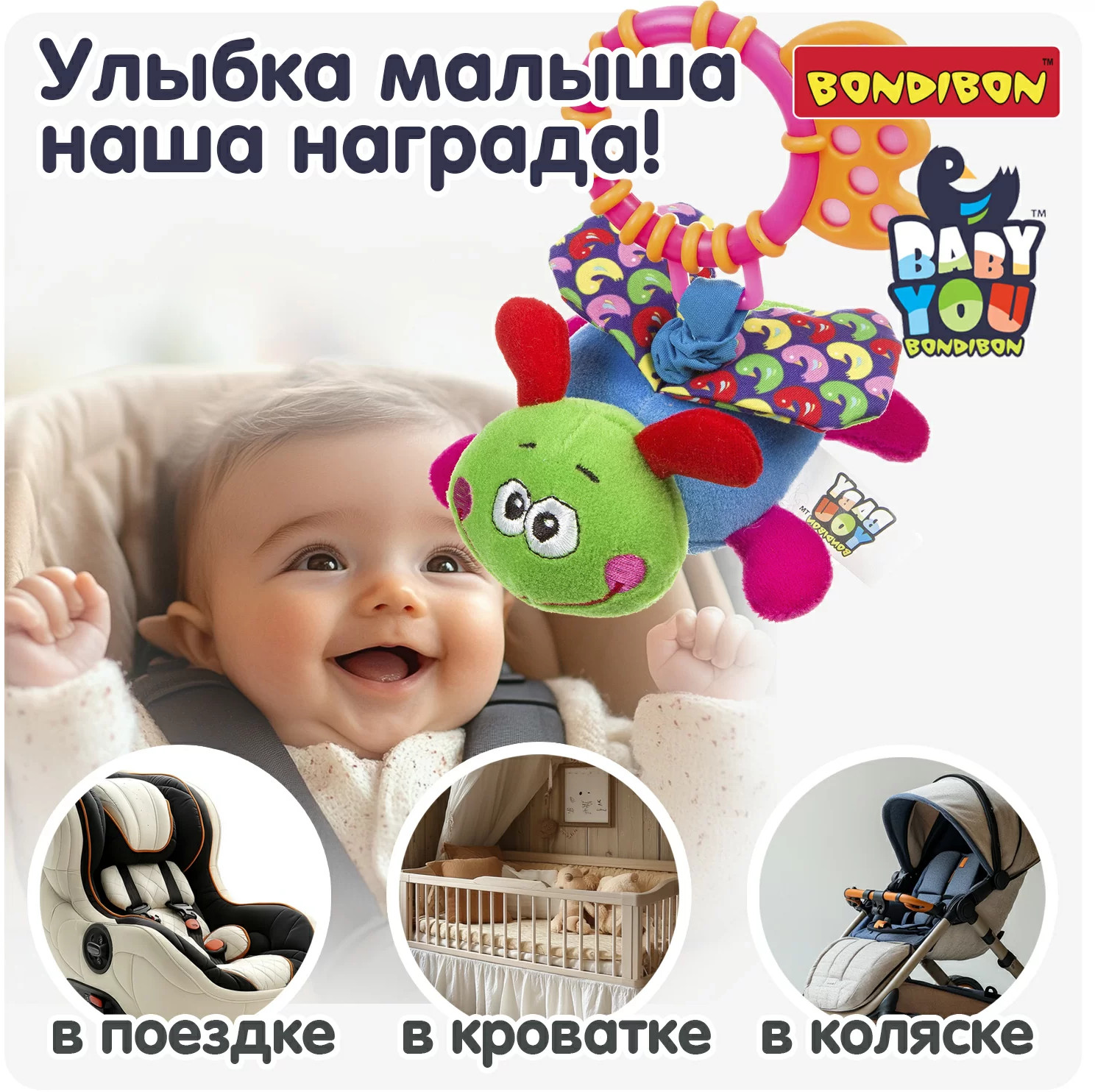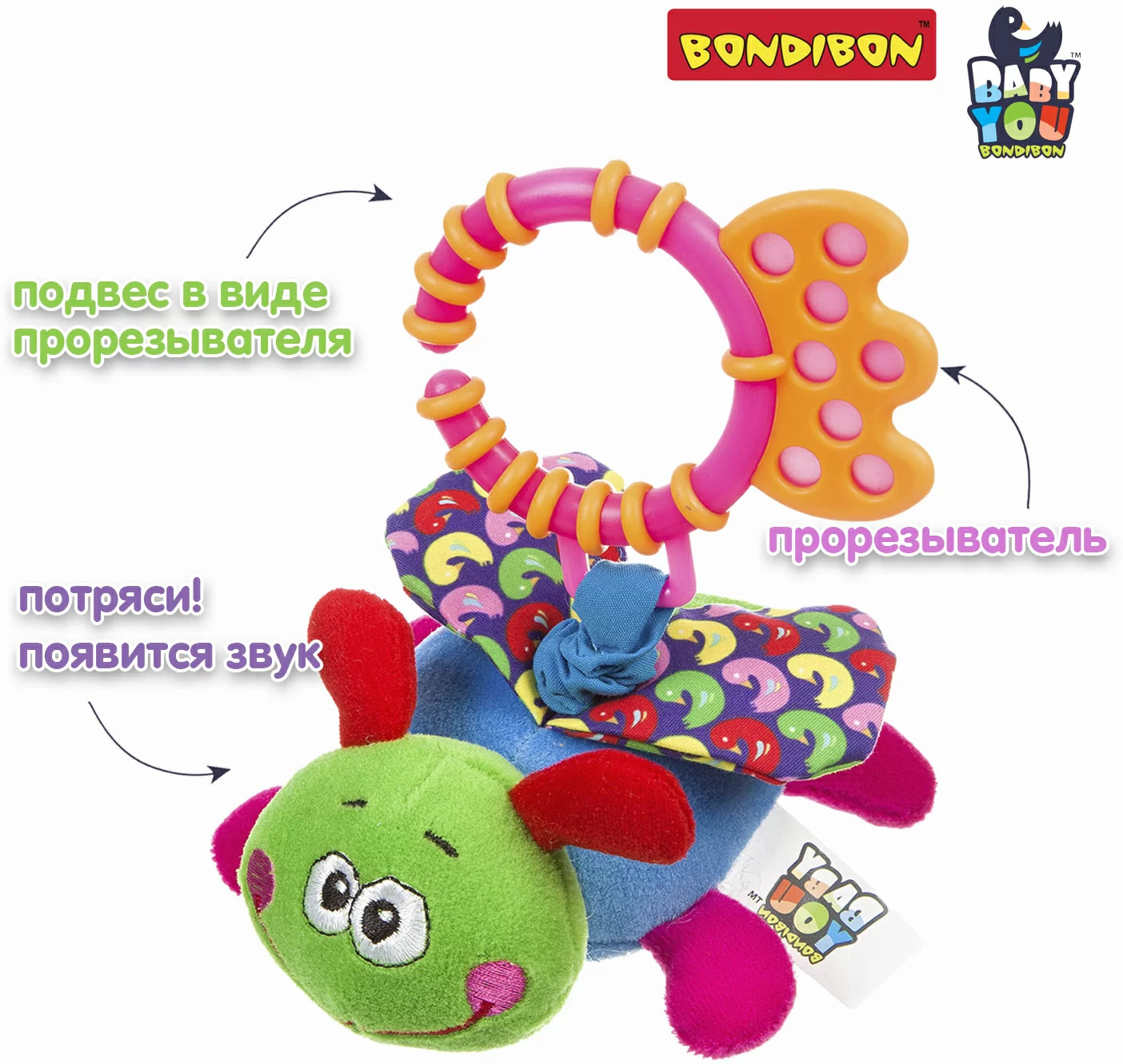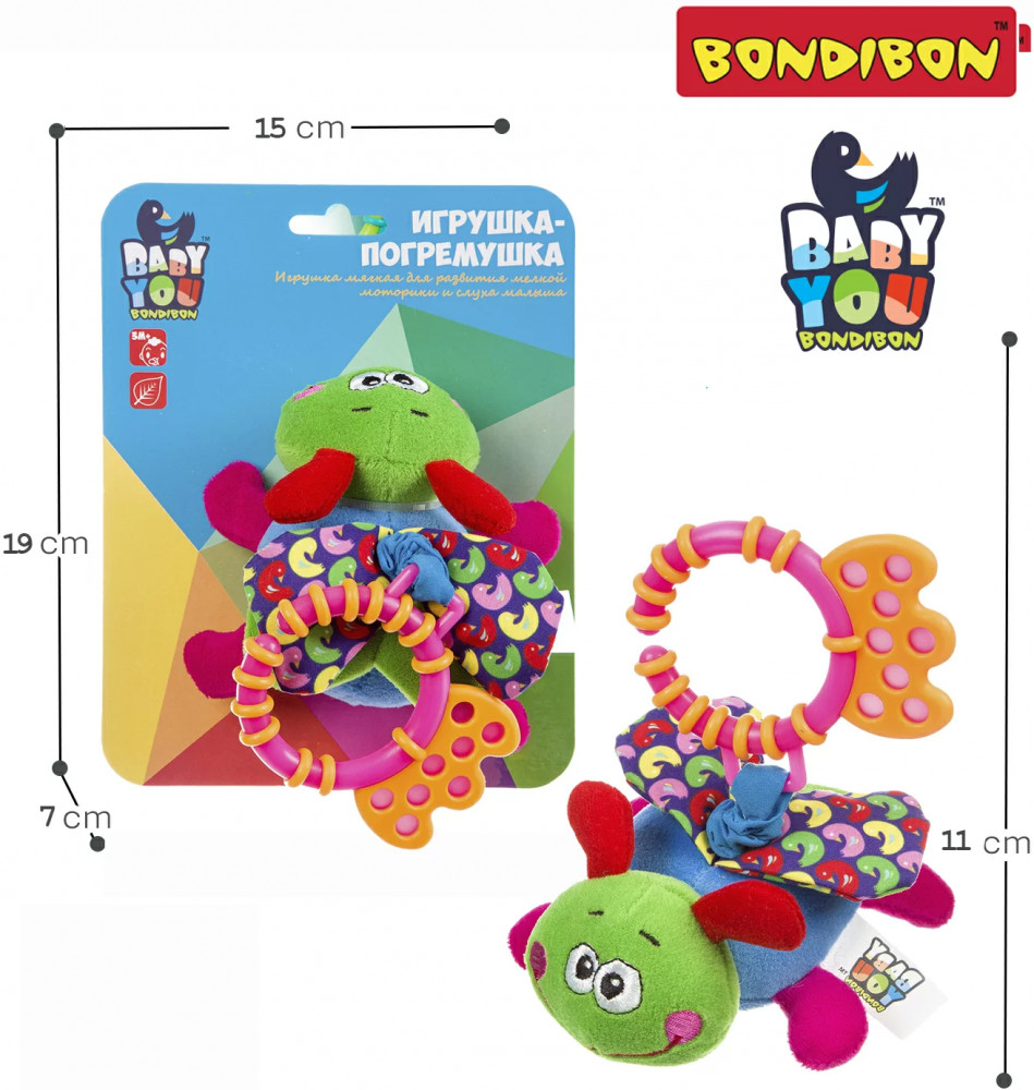 Игрушки для новорожденных серии Бэби Ю отличаются высоким качеством, продуманным дизайном и соответствуют высоким стандартам качества бренда Бондибон. Игрушка для малышей «Стрекоза» с растяжкой и прорезывателем способствует развитию мелкой моторики, координации движений и сенсорного восприятия и станет настоящим другом в первые месяцы жизни.