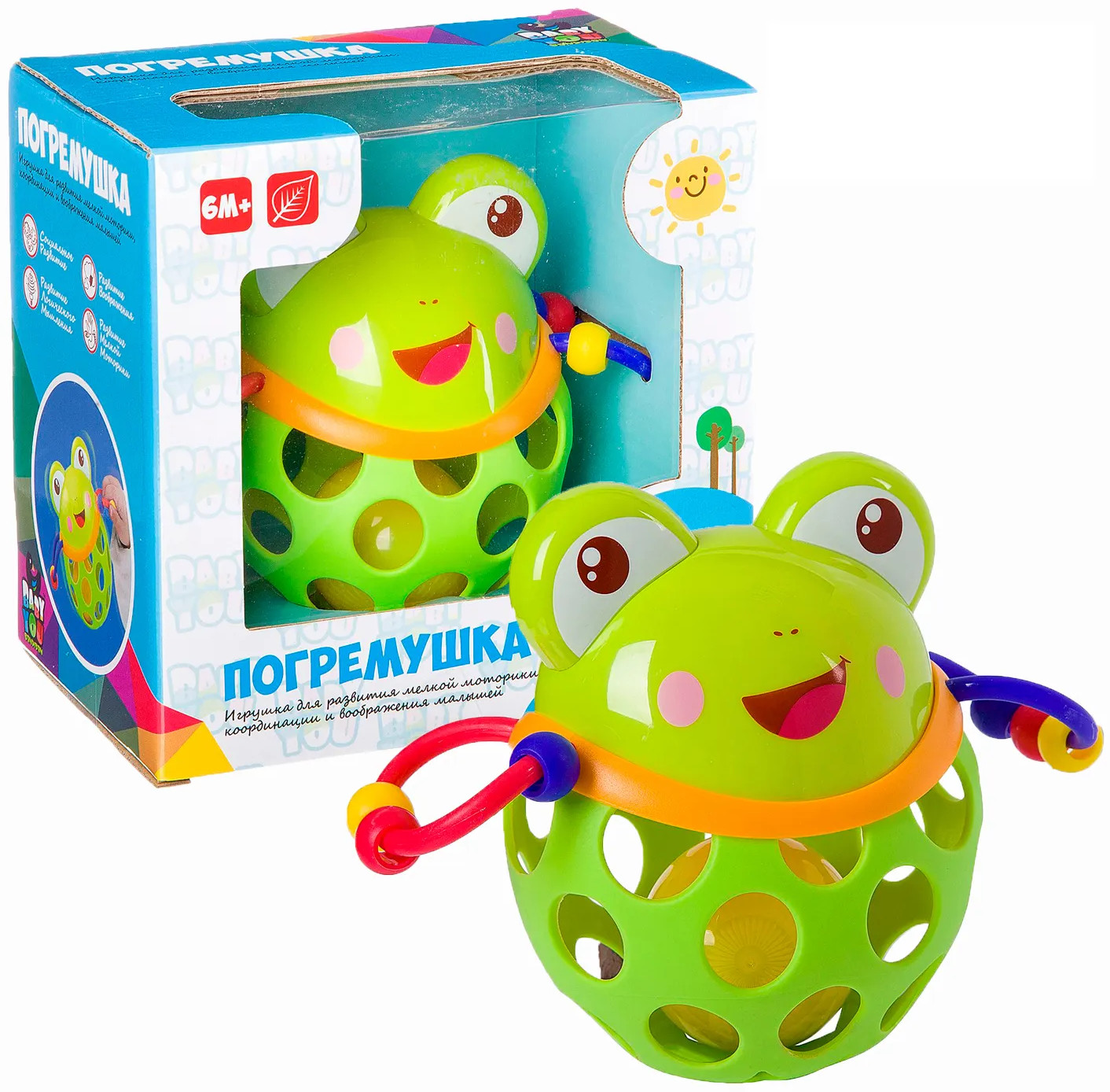 💳 Оплатить за товар можно при получении 🇰🇿 Есть бесплатная доставка по Казахстану от 1 дня 🎁 Копите бонусы с каждой покупки Серия: Baby You Тряси, сжимай, качай! Мир ярких ощущений и звуков откроет развивающая погремушка Лягушка серии «Baby You от Bondibon»! Тело игрушки сделано из двух вложенных друг в друга шаров, один из которых гнущийся и имеет сетчатую структуру, а второй — прочная пластиковая погремушка с шариками. Благодаря округлому основания забавная неваляшка привлекает внимание малыша и развивают координацию движений. |