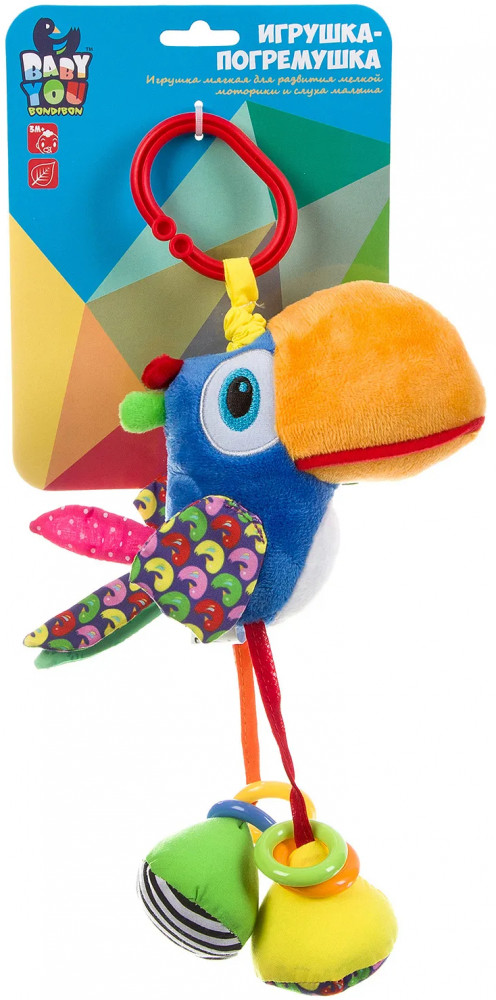 💳 Оплатить за товар можно при получении 🇰🇿 Есть бесплатная доставка по Казахстану от 1 дня 🎁 Копите бонусы с каждой покупки Серия: Baby You Мягкая развивающая игрушка-растяжка для малышей Тукан из серии «Baby You от Bondibon» станет верным спутником в игре и развитии вашего малыша! Эта яркая подвеска специально разработана для самых маленьких. Внимание крохи привлекут длинные ножки, за которые удобно хватать; механизм-растяжка, создающий увлекательный эффект вибрации, шуршащий хвост и крылья, которые малыш может исследовать пальчиками, развивая тактильные навыки; встроенный звенящий колокольчик и пищалка, которые стимулируют слуховое восприятие. |