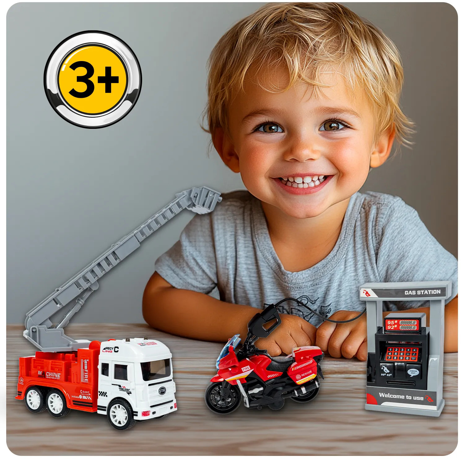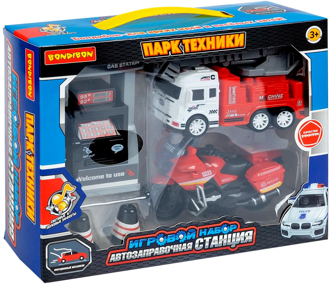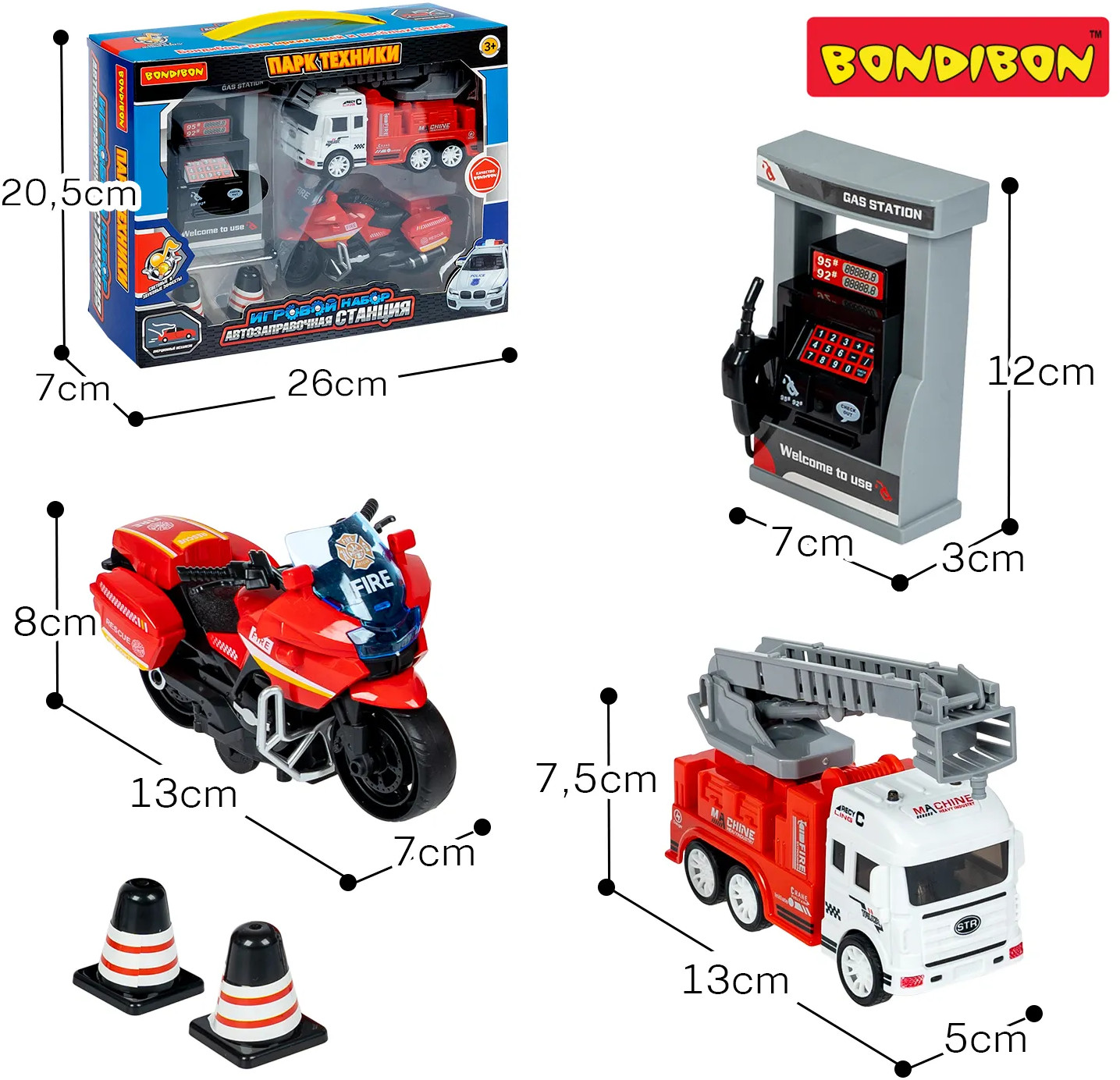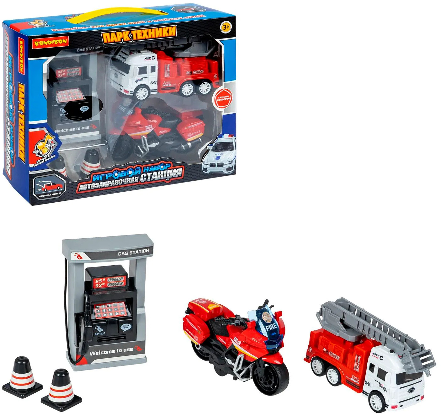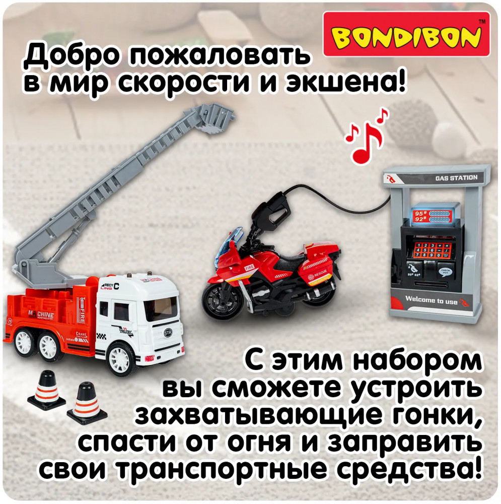 Bondibon Набор игровой «Автозаправочная станция. Пожарная служба»В данный момент этот товар отсутствует в продаже. Возможно, у нас найдется аналогичный или похожий товар здесь. Серия: Парк техники Ваш маленький автолюбитель мечтает об игровой заправочной колонке? Игровой набор «Автозаправочная станция. Пожарная служба» из серии «Парк Техники от Bondibon» подарит ребенку незабываемые впечатления! Ребенок может представлять, что заправляет инерционные машинки и оплачивает топливо, используя специальные кнопки. Транспорт с инерционным механизмом двигается самостоятельно после небольшого толчка. «Автозаправочная станция. Пожарная служба» поможет ребенку развивать воображение, логическое мышление, мелкую моторику и координацию движений. Игровые наборы серии «Парк Техники» выполнены из безопасных материалов и соответствуют высоким стандартам качества бренда Бондибон. |