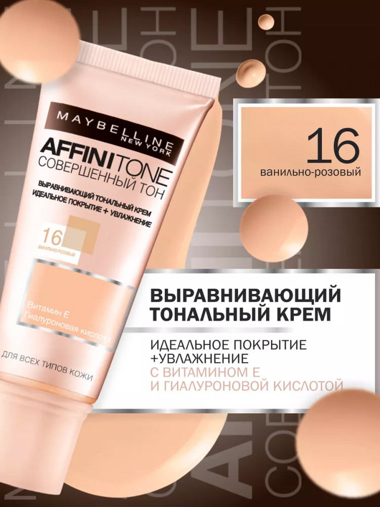 Maybelline New York Тональный крем для лица «Affinitone. Совершенный тон», оттенок 16 Ванильно-розовый