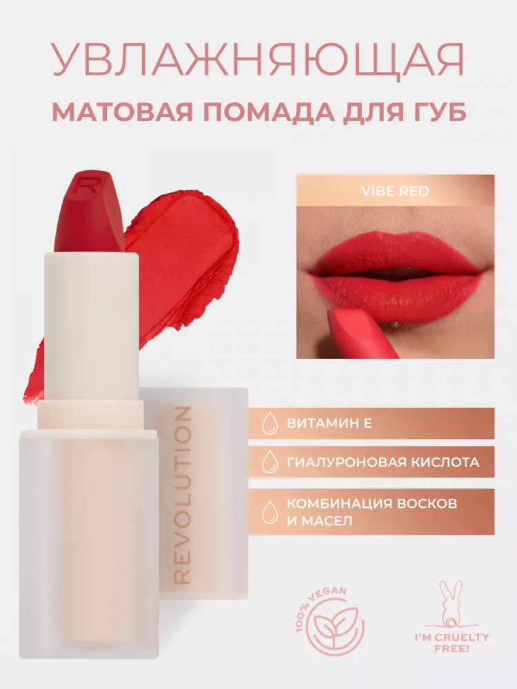 Makeup Revolution Помада для губ «Lip Allure Soft Satin Lipstick», тон Vibe Red