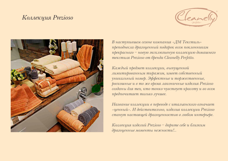 Эффектные и торжественные, лаконичные и в то же время роскошные изделия из новой коллекции Prezioso эксклюзивной линии Cleanelly Perfetto станут прекрасным подарком для тех, кто выбирает лучшее. Каждый предмет коллекции, выпущенной лимитированным тиражом, эксклюзивен и имеет собственный уникальный номер.