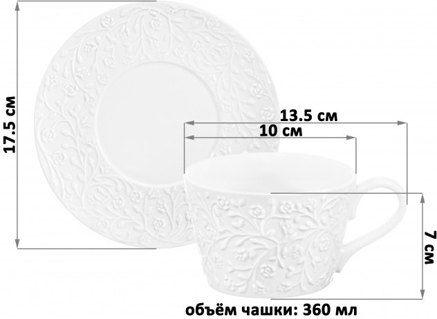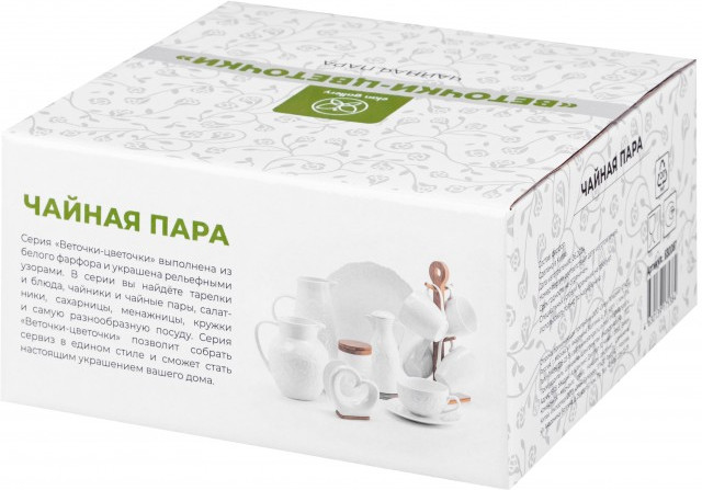 💳 Оплатить за товар можно при получении 🇰🇿 Есть бесплатная доставка по Казахстану от 1 дня 🎁 Копите бонусы с каждой покупки Серия: Веточки-цветочки Чайная пара выполнена из белого фарфора в классическом дизайне. Состоит из чашки и блюдца. Коллекция украшена рельефным узором в виде изящных веточек с маленькими цветочками. Чайная пара подходит для любителей чая и кофе. Вы сможете насладиться любимыми напитками из кружки с изящным рельефным узором и удивить своих гостей. Используйте блюдце как подставку под чашку. Положите на тарелочку кусочек торта, домашнего пирога или пирожное. Сервировочная тарелка подойдёт не только для десерта, но и закусок: сырной нарезки, сырокопчёной колбасы или свежих овощей и зелени. Изделия из белого фарфора идеально впишутся в любой интерьер вашей кухни. |
