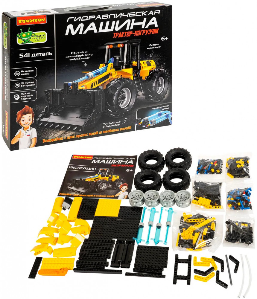 Хочешь построить настоящую машину, которая работает на силе воды? Набор робототехники с Буки «Гидравлическая машина. Трактор-погрузчик» от Bondibon — это не просто конструктор, а занятный способ познакомиться с принципами гидравлического привода. Собери собственную модель строительной техники, которая работает благодаря гидравлической системе. Собранная машина будет двигаться, как настоящая, развивая тягу ребенка к конструированию и науке.