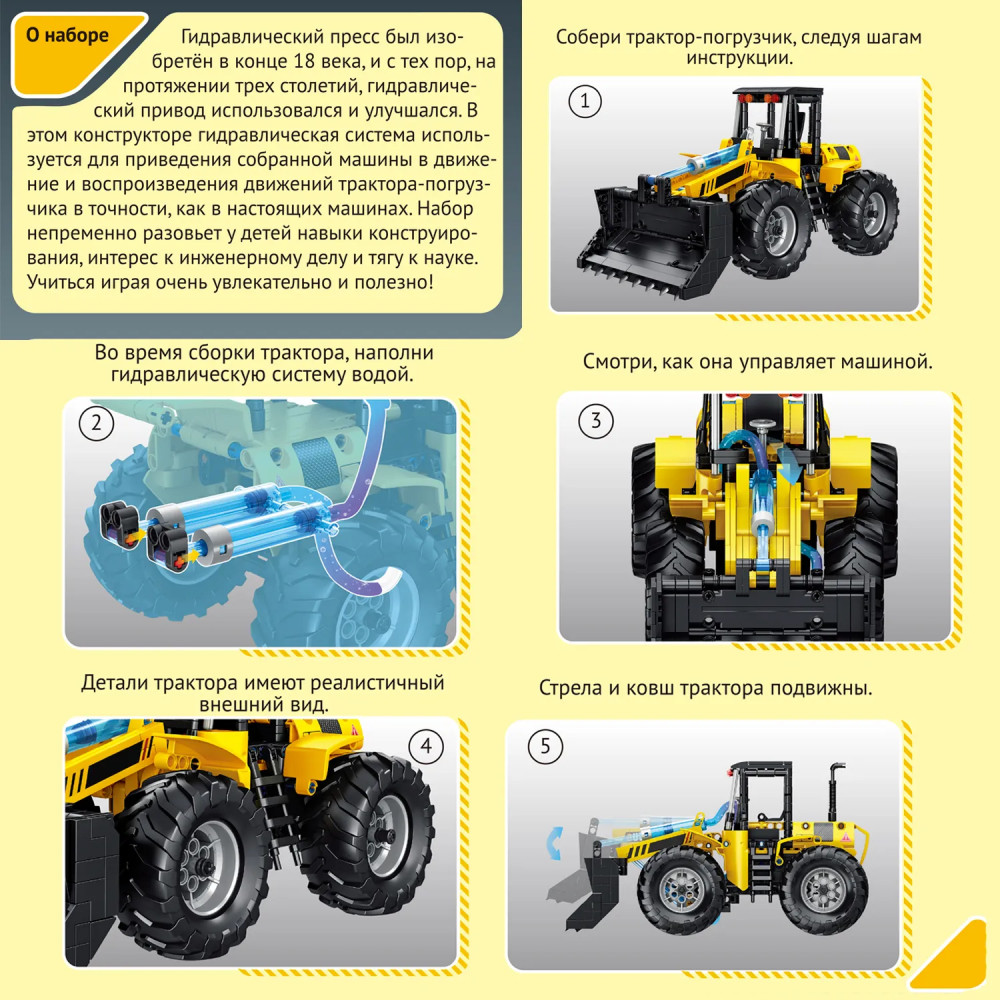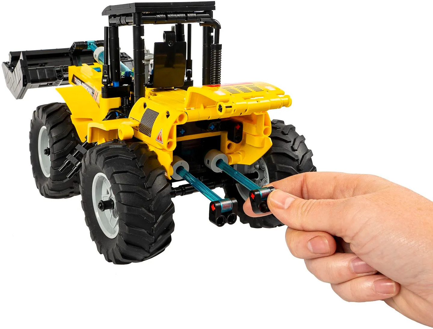 В наборе: 541 деталь конструктора, функциональная гидравлическая система, инструкция с понятными схемами. Работает без батареек.