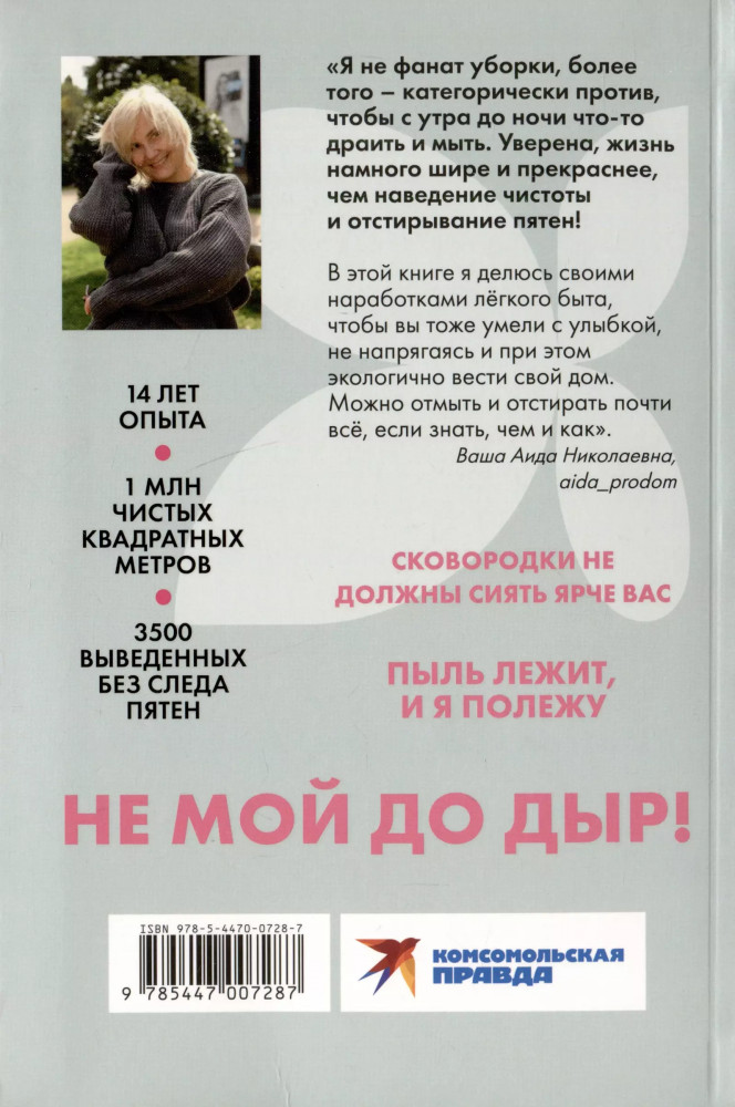 💳 Оплатить за товар можно при получении 🇰🇿 Есть бесплатная доставка по Казахстану 🎁 Копите бонусы с каждой покупки Серия: Быть Женщиной Эксперт по клинингу № 1 в России с 20-летним опытом Аида Синицына, автор популярного блога aida_prodom, делится профессиональными советами, чтобы вы умели грамотно и не напрягаясь, при этом экологично вести быт. Вы узнаете максимум про бюджетные подручные средства. Например, как убрать пятна от ягод на футболках простым кипятком, пятна на белой мебели и плинтусах — школьным ластиком, а липкий слой на бытовой технике и оконных рамах — эфирным маслом апельсина; как вернуть тюлю белоснежный вид, используя соду; как отмыть только долькой лимона смесители, краны и раковины. И еще множество других подсказок для легкого ненапряжного быта. Автор убеждена, что домоводство может быть азартным, приятным и не отнимающим много времени и денег процессом. Книга будет полезна всем, кто любит (и не очень) наводить чистоту и порядок в квартире. |