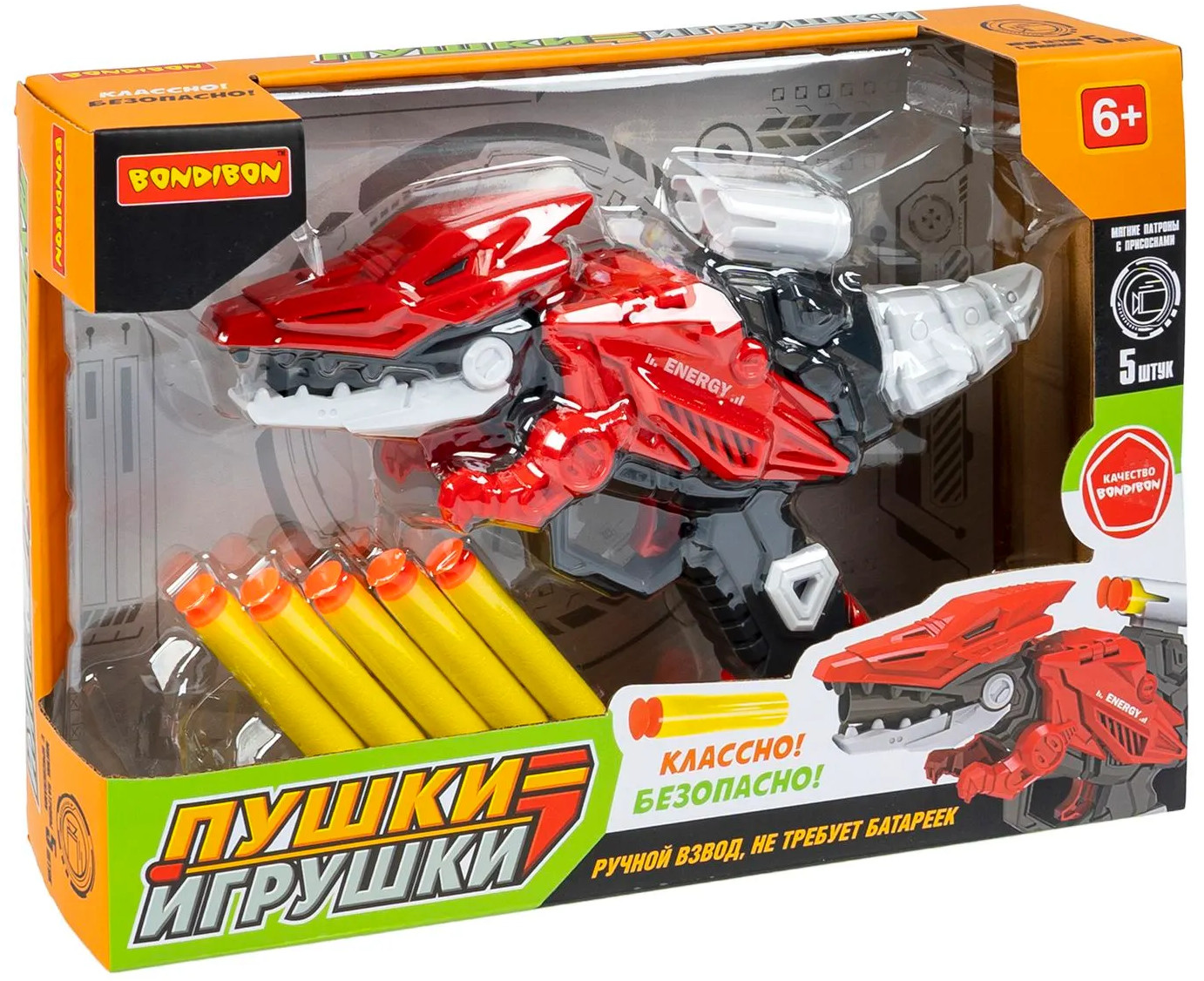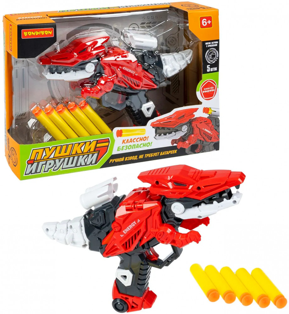Bondibon Бластер «Динозавр»В данный момент этот товар отсутствует в продаже. Возможно, у нас найдется аналогичный или похожий товар здесь. Серия: Пушки-игрушки Почувствовать себя настоящим охотником на динозавров легко! Бластер «Динозавр» серии «Пушки-игрушки» в виде красного птерозавра от Bondibon оснащен подвижными конечностями и держателем запасных пуль. Чтобы произвести выстрел, заряди мягкие снаряды в игрушечное оружие, взведи бластер, оттянув хвост игрушки, и нажми на спусковой курок! Бластер «Динозавр» — это полностью механическая игрушка, для игры не потребуются батарейки, что делает его безопасным и экологичным. |