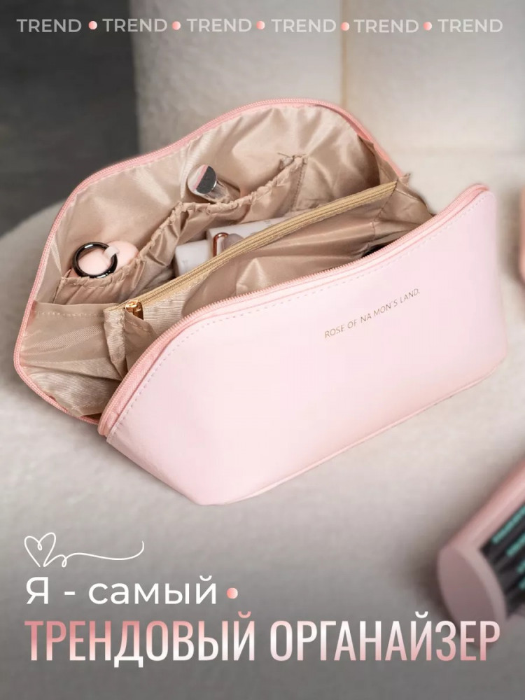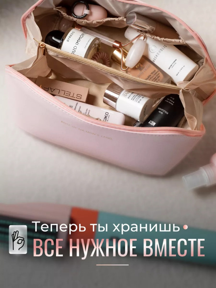 Трендовый органайзер для путешествий сочетает в себе стильный дизайн, вдохновленный популярными блогерами из Pinterest, и практичность. Эта красивая и вместительная косметичка станет идеальным помощником для хранения вещей в поездках. Удобная раскладная конструкция с отделениями позволяет легко разложить всю косметику, аксессуары или украшения, сохраняя порядок и организованность.