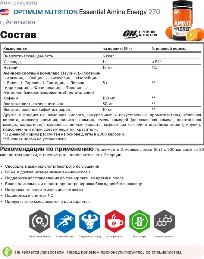 Optimum Nutrition Аминокислоты со вкусом апельсина «Amino Energy. Orange cooler»