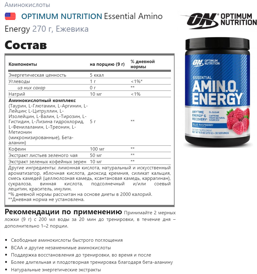 Optimum Nutrition Аминокислоты со вкусом голубой малины «Amino Energy. Blue raspberry»