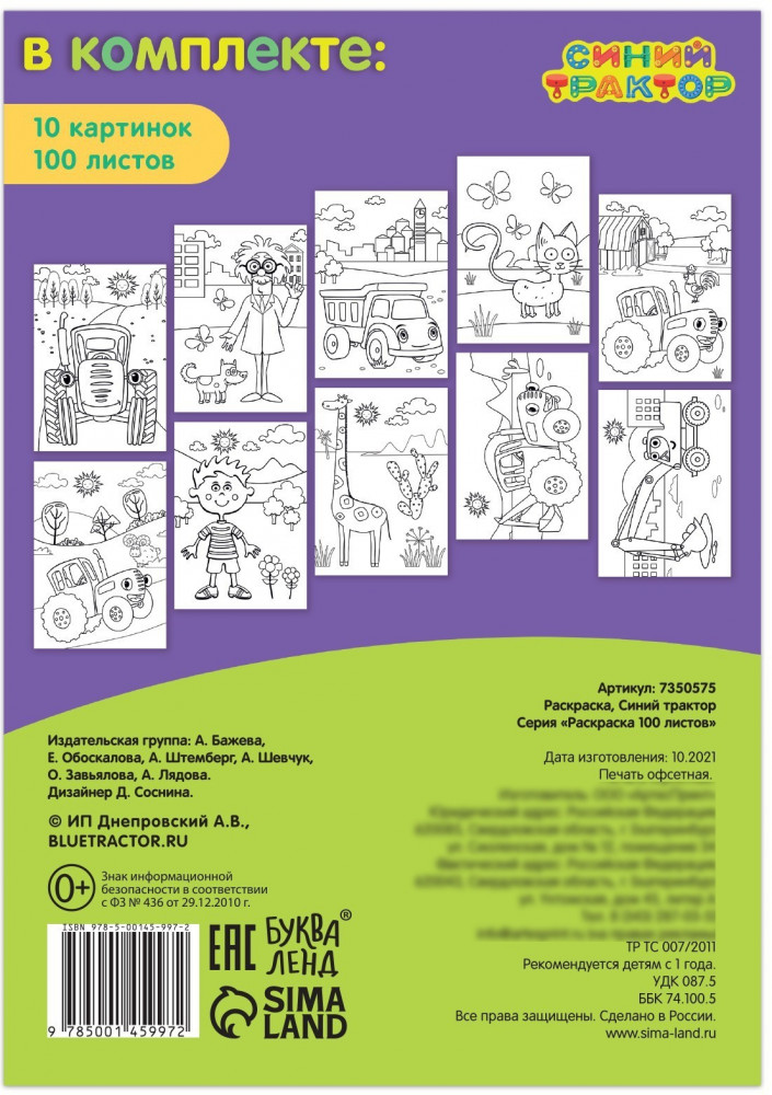 В данный момент этот товар отсутствует в продаже. Возможно, у нас найдется аналогичный или похожий товар здесь. Серия: Раскраски Буква-Ленд Увлекательная книжка-раскраска «Синий трактор» создана специально для творческого развития малышей с раннего возраста. Издание содержит в себе 10 разных сюжетов по 10 экземпляров каждого, поэтому отлично подойдёт для творческих занятий в детском саду.
