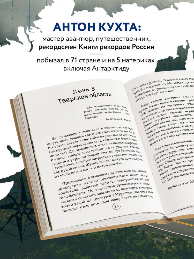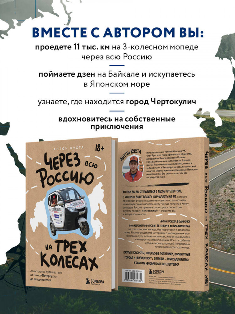 💳 Оплатить за товар можно при получении 🇰🇿 Есть бесплатная доставка по Казахстану от 1 дня 🎁 Копите бонусы с каждой покупки Серия: Записки российских блогеров Антон Кухта — мастер авантюр, путешественник, блогер, член Русского Географического общества, рекордсмен Книги Рекордов России. Побывал в 71 стране и на 5 материках, включая Антарктиду. Взошел на 3 из 7 главных вершин планеты, гонялся за бандитами в Эквадоре, ночевал в шиитской мечети в Ираке, исколесил Северный Пакистан на мотоцикле. Мечтает посетить все государства мира. И он точно знает толк в приключениях! |
