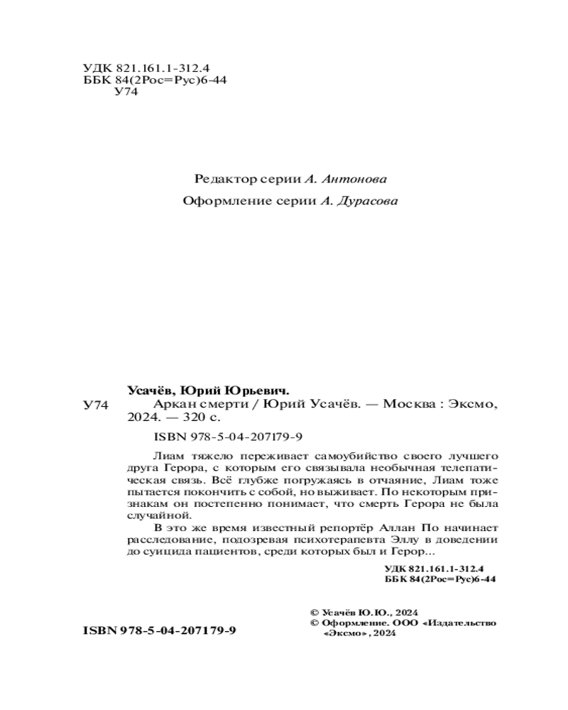💳 Оплатить за товар можно при получении 🇰🇿 Есть бесплатная доставка по Казахстану от 1 дня 🎁 Копите бонусы с каждой покупки Серия: Тайна внутри тебя. Психологический триллер Лиам тяжело переживает самоубийство своего лучшего друга Герора, с которым его связывала необычная телепатическая связь. Всё глубже погружаясь в отчаяние, Лиам тоже пытается покончить с собой, но выживает. По некоторым признакам он постепенно понимает, что смерть Герора не была случайной. |