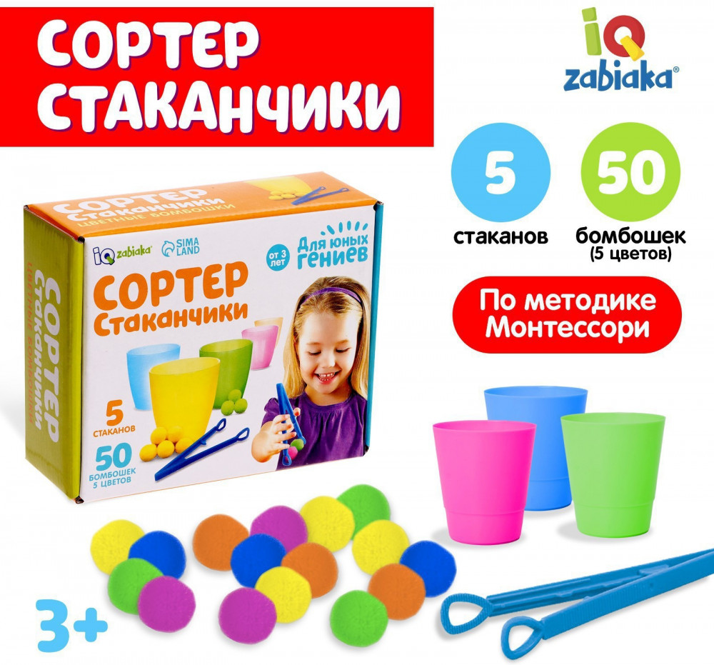 💳 Оплатить за товар можно при получении 🇰🇿 Есть бесплатная доставка по Казахстану от 1 дня 🎁 Копите бонусы с каждой покупки «Сортер-стаканчики: цветные бомбошки» с пинцетом подходит для занятий по методике Монтессори. С набором малыш быстро запомнит цвета и научится считать. В комплект входят 50 ярких шариков-бомбошек 5 цветов, 5 цветных стаканчиков и пинцет для сортировки. |