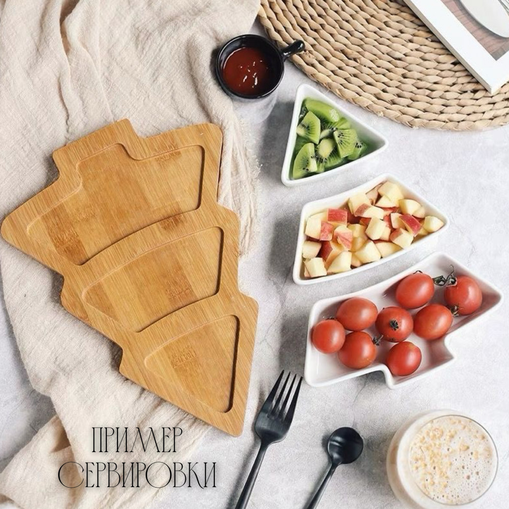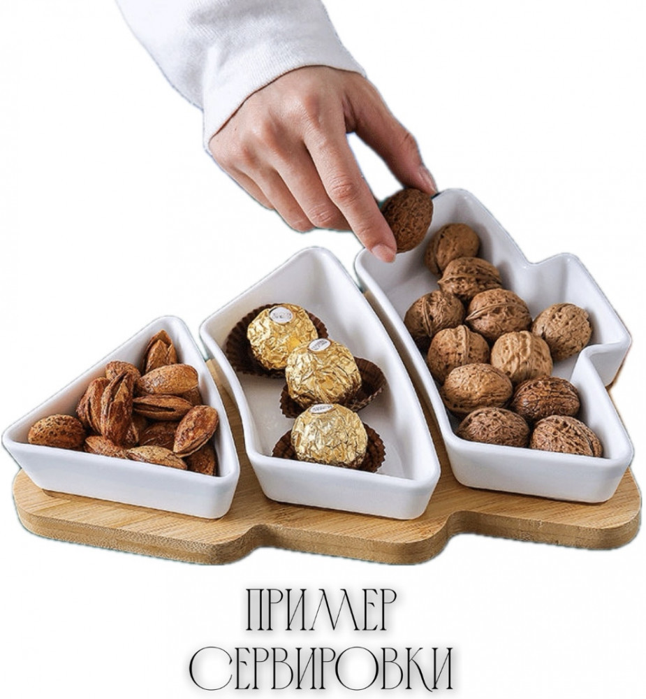 Менажница на подставке «Ёлка»В данный момент этот товар отсутствует в продаже. Возможно, у нас найдется аналогичный или похожий товар здесь. Менажница на подставке «Ёлка», размером 28 × 20 × 4 см, выполнена из белого упрочненного фарфора и бамбука. Комплект состоит из четырех элементов. Менажница послужит отличным дополнением к вашему столу. Так же может стать прекрасным подарком на новогодних праздниках, который оценит любая хозяйка. |