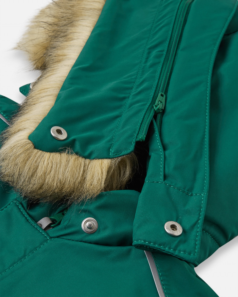 Этот непромокаемый зимний комбинезон изготовлен из дышащего и ветронепроницаемого, а также водо- и грязеотталкивающего материала. Все швы проклеены, водонепроницаемы, а еще комбинезон снабжен утепленной вставкой на задней части, благодаря которой ребенку будет тепло и сухо во время зимних приключений. Благодаря гладкой подкладке из полиэстера комбинезон очень легко надевать и удобно носить с теплой одеждой промежуточного слоя. Съемный регулируемый капюшон обеспечивает дополнительную безопасность во время игр на свежем воздухе. Кнопки легко отстегиваются, если капюшон случайно за что-нибудь зацепится. Прочные силиконовые штрипки не дают брючинам задираться и защищают ноги от холода и влаги. Этот зимний комбинезон отлично подойдет и для игр в снегу, и для прогулки по городу, а еще его можно сушить в сушильной машине!