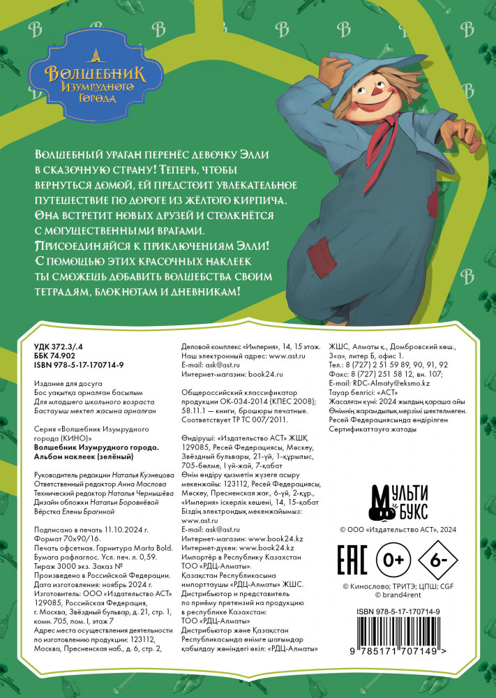 Волшебник Изумрудного города. Альбом наклеек (зелёный)-20% +13