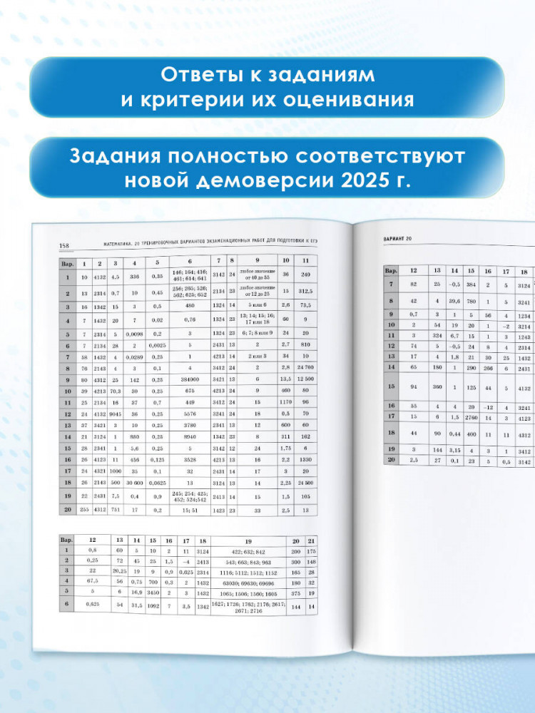 ЕГЭ-2025. Математика. 20 тренировочных вариантов экзаменационных работ для подготовки к ЕГЭ. Базовый уровень
