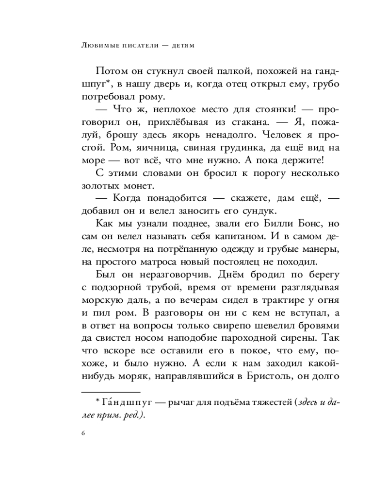 💳 Оплатить за товар можно при получении 🇰🇿 Есть бесплатная доставка по Казахстану 🎁 Копите бонусы с каждой покупки Серия: Любимые писатели — детям Уже около полутора веков дети читают роман английского писателя Роберта Льюиса Стивенсона «Остров сокровищ», и таинственный остров с пиратскими сокровищами будоражит воображение мальчишек и девчонок. Интересно, что роман изначально задумывался для детей и впервые был опубликован в детском журнале в конце XIX века. Он быстро завоевал популярность во всём мире и был переведён на множество языков. Отчаянных искателей сокровищ и коварных пиратов можно увидеть и на экране: по книге было снято множество фильмов и мультфильмов. |