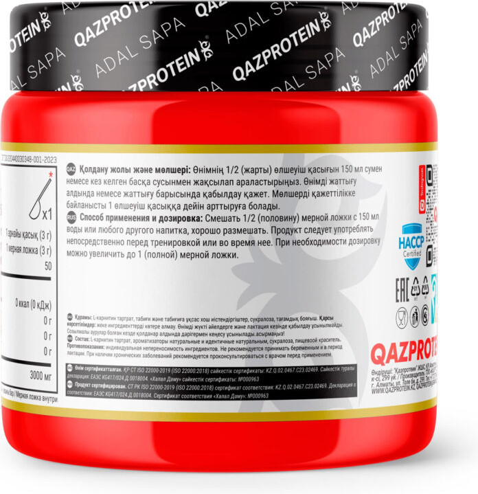 L-Carnitine Qazprotein содержит карнитин — витаминоподобное соединение, дающее ряд преимуществ организму. Оно способствует тому, чтобы ваш организм использовал больше жировых запасов на свои энергетические нужды. Карнитин ускоряет обменные процессы, в частности, утилизацию жира. Он доставляет жирные кислоты в митохондрии, где жиры расщепляются и преобразуются в энергию, которая идет на жизнеобеспечение всего организма. Особенно много данного вида топлива расходуют мышцы, сердце и мозг. Ведь основная часть карнитина накапливается именно в них. За счет этого повышается общая работоспособность организма и физическая выносливость, улучшается сердечная и мозговая функция.Сжигание жира, получение энергии и улучшение выносливости. Ценный вклад в улучшение вашей физической формы карнитин вносит в качестве переносчика молекул жира. Это связано с тем, что жирные кислоты могут проникнуть в энергетические станции клеток, или митохондрии, только если они связаны с карнитином. В результате стимулируется сжигание жира, что является особенно спасительным для долгих тренировок на выносливость, в которых ставка делается на жиры и углеводы как источник топлива. Сохранение мышечной массы.