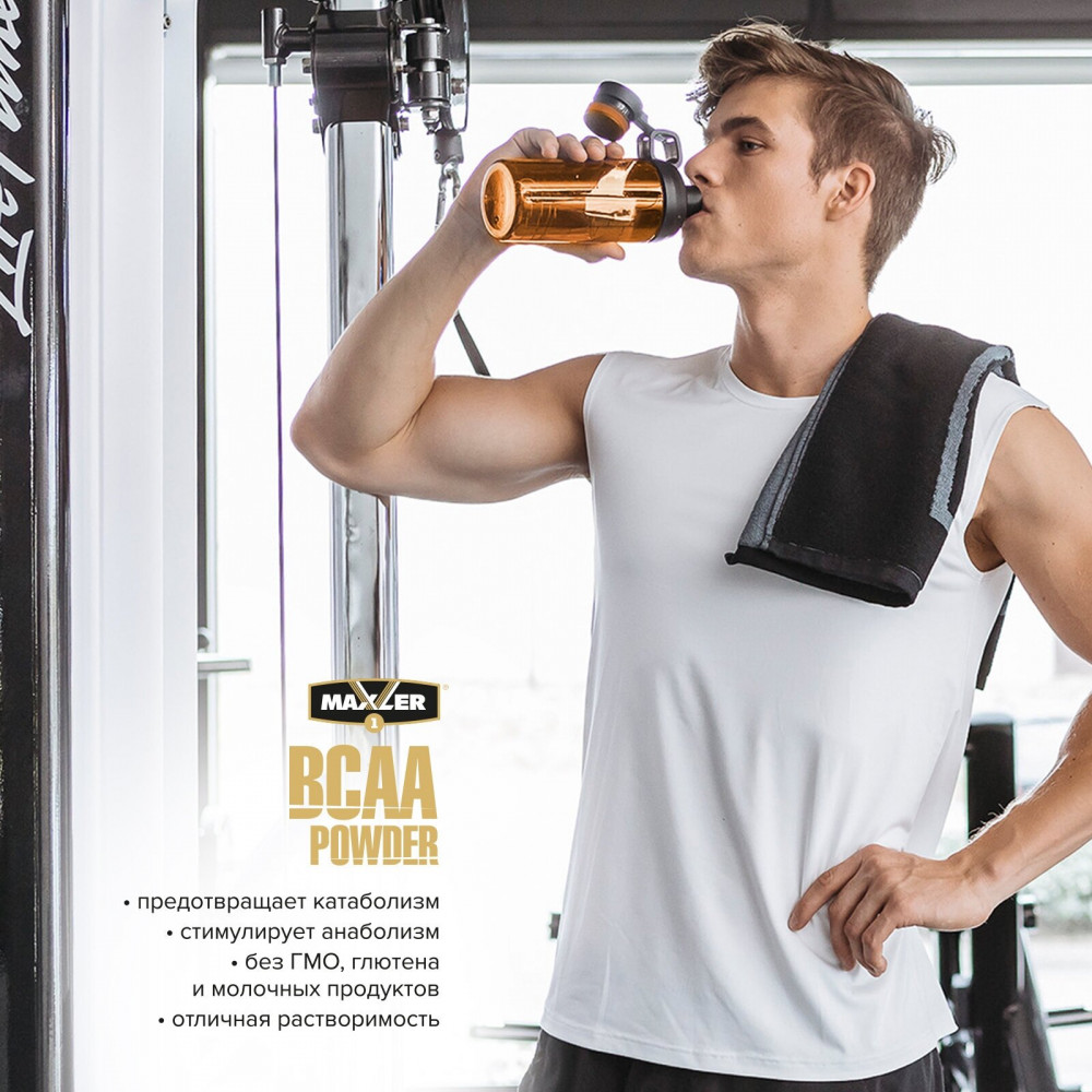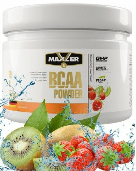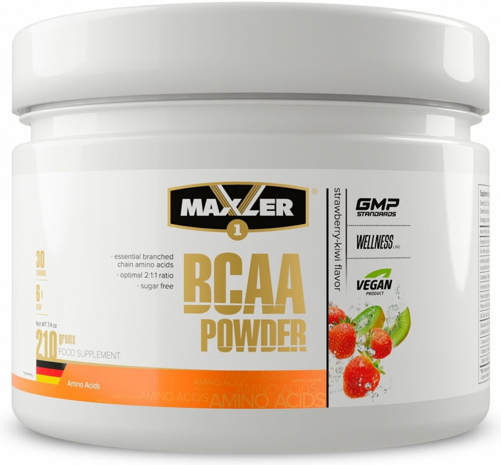 Уже из названия добавки Maxler «BCAA Powder» можно с полной уверенностью сказать, что в ее состав входят амины группы БЦАА. Мышцы человека состоят из двух видов белковых соединений — актина и миозина. Они, в свою очередь, содержат в основном три амина — лейцин, валин и изолейцин, входящие в группу БЦАА. Принимая Maxler «BCAA Powder» , атлет активирует анаболические процессы в мышечных тканях. Дело в том, что лейцин является сигнальным веществом, запускающим производство белкового соединения mTOR. Оно необходимо для старта реакций деления клеточных структур. Следует заметить, что вторым фактором для активации анаболических процессов является достаточная концентрация АТФ.
