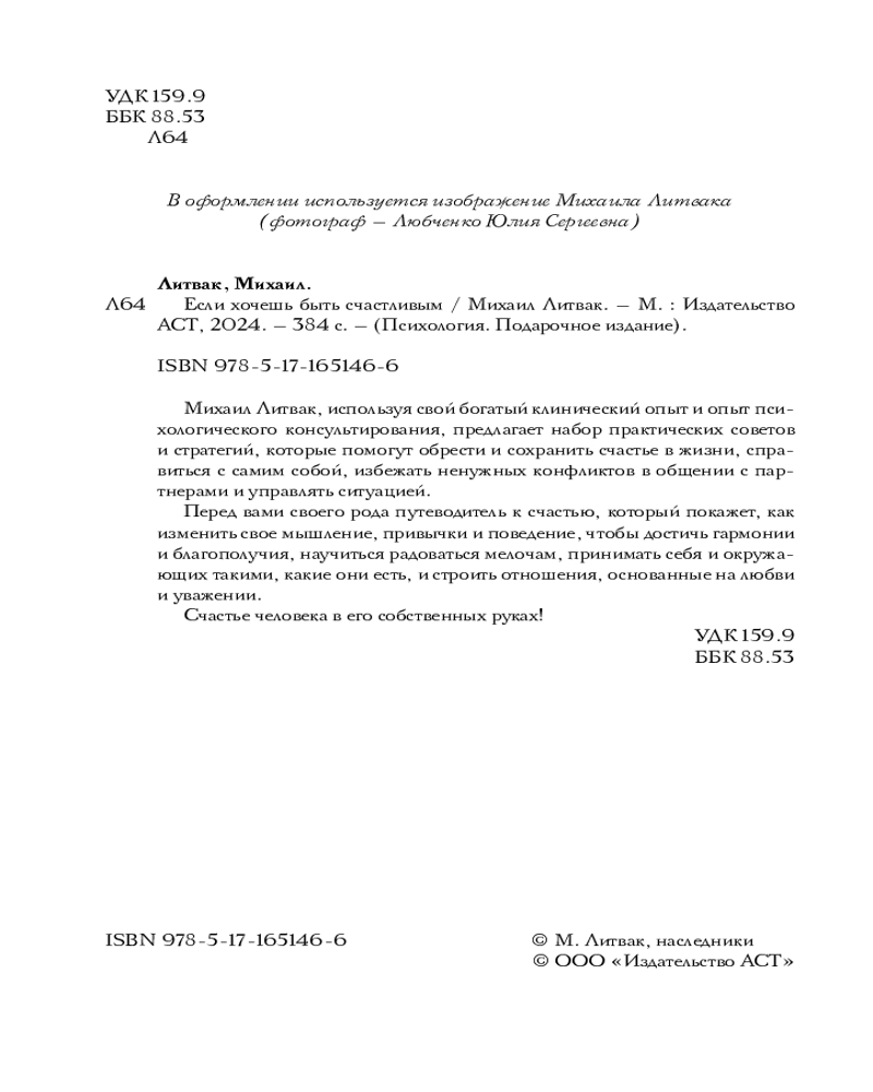 💳 Оплатить за товар можно при получении 🇰🇿 Есть бесплатная доставка по Казахстану от 1 дня 🎁 Копите бонусы с каждой покупки Серия: Психология. Подарочное издание Михаил Литвак — эксперт в области психологии и психиатрии, основатель КРОССа (клуба решивших овладеть стрессовыми ситуациями), член-корреспондент Российской академии естественных наук, кандидат медицинских наук. Благодаря оригинальным психоаналитическим методикам автора тысячи людей избавились от комплексов, страхов, депрессий и стали здоровыми, успешными и счастливыми. |
