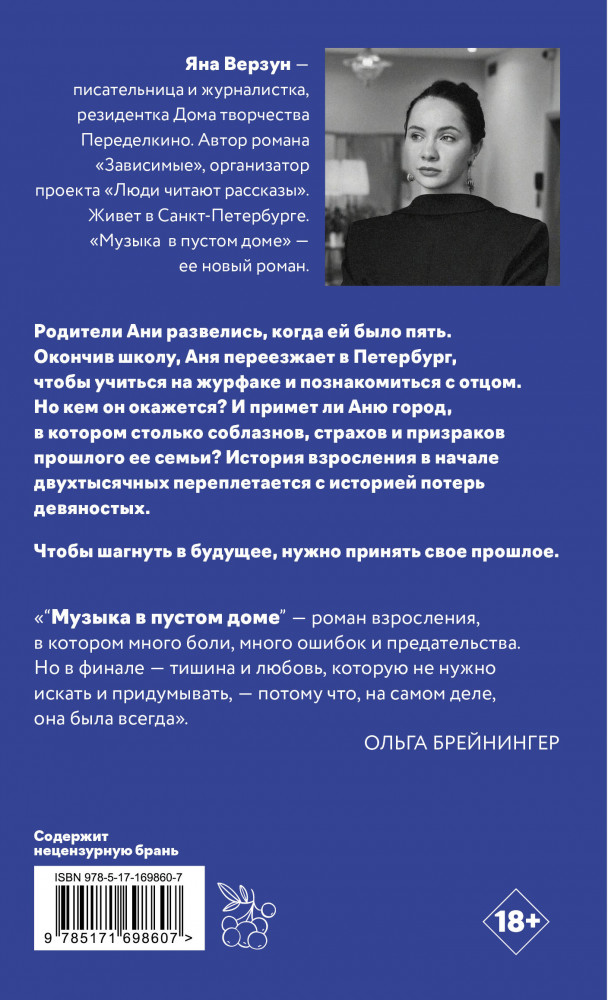 💳 Оплатить за товар можно при получении 🇰🇿 Есть бесплатная доставка по Казахстану 🎁 Копите бонусы с каждой покупки Серия: Рябина: новые РЕШения Родители Ани развелись, когда ей было пять. Окончив школу, Аня переезжает в Петербург, чтобы учиться на журфаке и познакомиться с отцом. Но кем он окажется? И примет ли Аню город, в котором столько соблазнов, страхов и призраков прошлого ее семьи? История взросления в начале двухтысячных переплетается с историей потерь девяностых. Чтобы шагнуть в будущее, нужно принять свое прошлое. |
