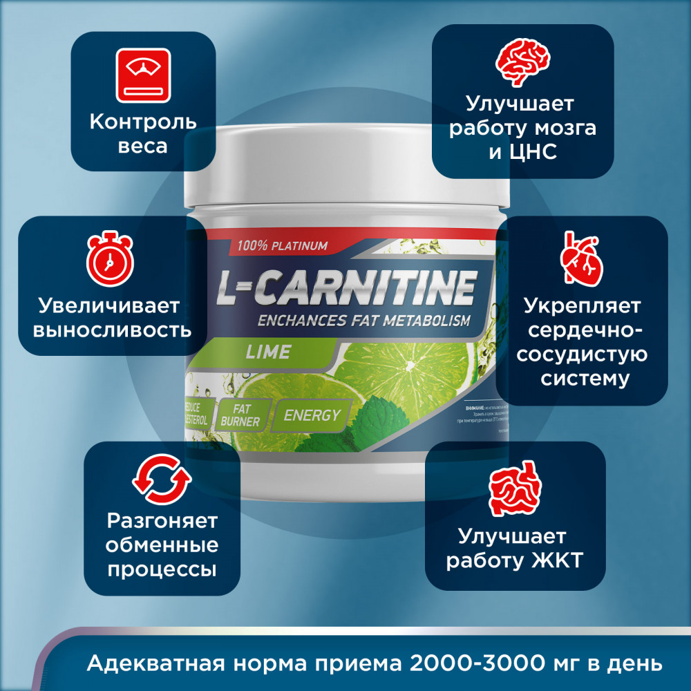 L-Carnitine powder от Geneticlab решает проблему дефицита карнитина в организме и даёт стимул и силы для занятий спортом после работы. Продукт также улучшает обмен веществ, помогает без вреда для здоровья и ЖКТ убрать лишний вес, сформировать красивый рельеф тела. В борьбе с лишним весом он эффективно дополняет интенсивные физические нагрузки и кардиотренировки. Карнитин способствует также улучшению работы сердечно-сосудистой системы и мозга. Происходит это в силу того, что основная часть карнитина накапливается именно в сердечной мышце и мозге. Поэтому и энергию, выбрасываемую после расщепления жиров, расходуют в первую очередь данные органы. Они, кстати говоря, являются основными потребителями энергии из сжигаемых жиров. Чем эффективнее работает карнитин, тем больше энергии для надлежащего функционирования получают сердце и мозг.