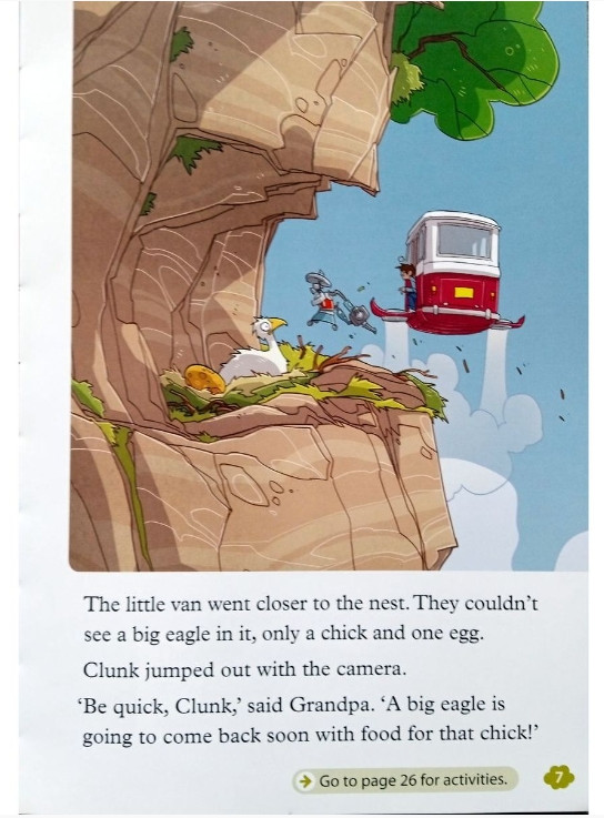 Дедушка, Бэн, Роузи, Элис и Кланк отправились высоко в горы, чтобы изучить орлов. Когда они нашли гнездо, орлы приняли Кланка за пищу! Станет ли Кланк их ужином? И что произойдёт, когда двое альпинистов обнаружат гнездо? |