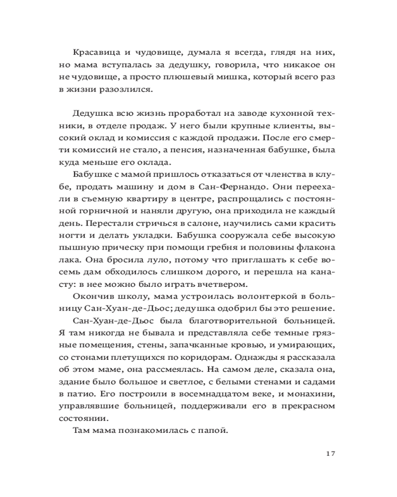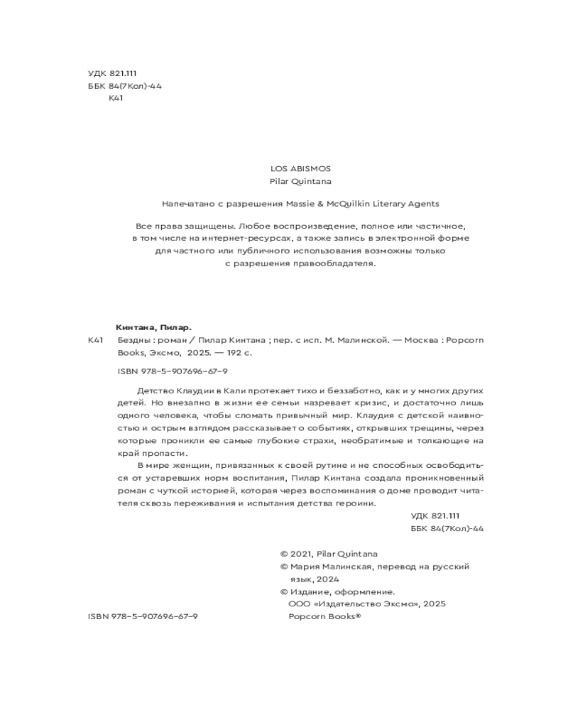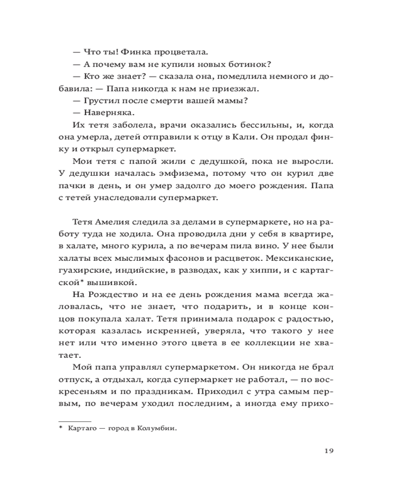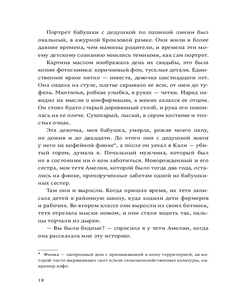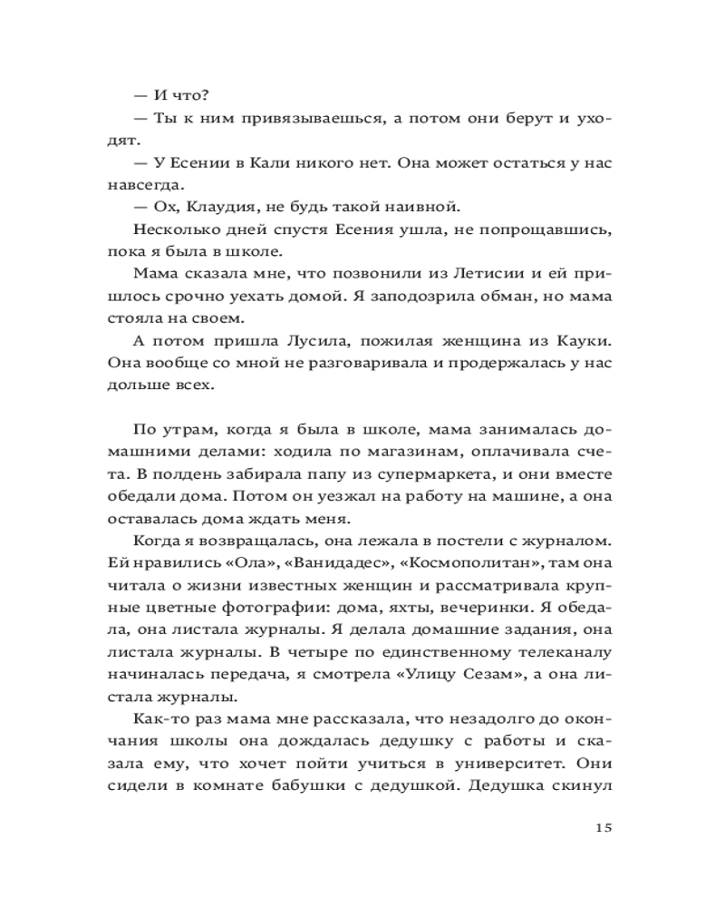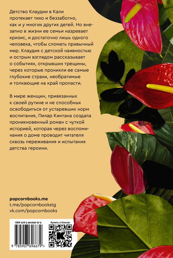 Серия: Brave new world Детство Клаудии в Кали протекает тихо и беззаботно, как и у многих других детей. Но внезапно в жизни ее семьи назревает кризис, и достаточно лишь одного человека, чтобы сломать привычный мир. Клаудия с детской наивностью и острым взглядом рассказывает о событиях, открывших трещины, через которые проникли ее самые глубокие страхи, необратимые и толкающие на край пропасти. В мире женщин, привязанных к своей рутине и не способных освободиться от устаревших норм воспитания, Пилар Кинтана создала проникновенный роман с чуткой историей, которая через воспоминания о доме проводит читателя сквозь переживания и испытания детства героини. |