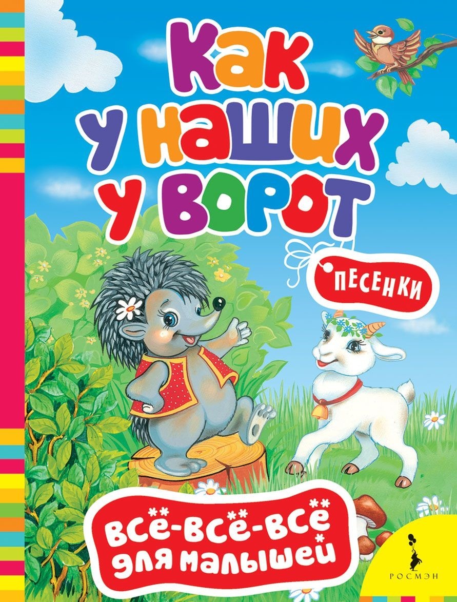 Как у наших у ворот. ПесенкиВ данный момент этот товар отсутствует в продаже. Возможно, у нас найдется аналогичный или похожий товар здесь. Серия: Всё-всё-всё для малышей Задорные песенки для самых маленьких в книжке "Как у наших у ворот". Книжка удобного формата с добрыми иллюстрациями и весёлыми стихами. Малыш с удовольствием будет рассматривать картинки и повторять за Вами несложные рифмы. |