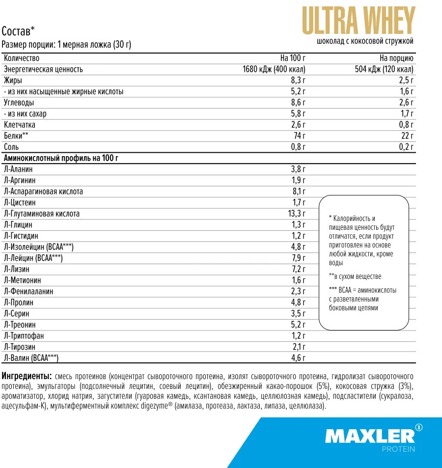 Ultra Whey — это 80% сывороточный протеин высочайшего качества из натуральных ингредиентов. Это обеспечивает быстрое всасывание белка в кровь. Мы получаем его из молока коров на свободном выпасе, поэтому Ultra Whey содержит низкий уровень жиров и углеводов. Продукт также включает в себя все 9 незаменимых аминокислот, которые помогают строить новые мышцы и способствуют восстановлению.