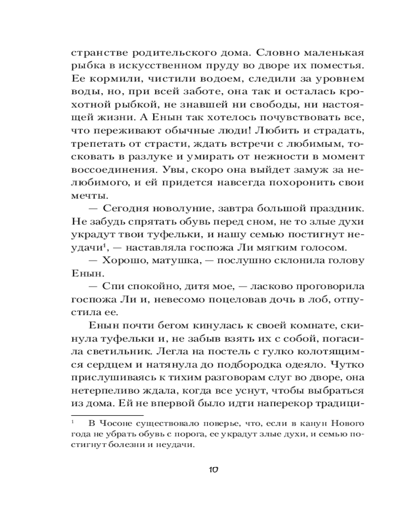 💳 Оплатить за товар можно при получении 🇰🇿 Есть бесплатная доставка по Казахстану от 1 дня 🎁 Копите бонусы с каждой покупки Серия: ФантАзия В средневековой Корее эпохи Чосон существовало поверье: в канун Нового года по лунному календарю убирать обувь с порога, чтобы ее не украли злые духи. Иначе семью постигнут несчастья. Дочь королевского советника Ким Енын, зачитавшись до ночи любовным романом, забыла об этой традиции и утром обнаружила в своей комнате саркастичного духа, который хочет забрать ее жизнь и стать человеком. |