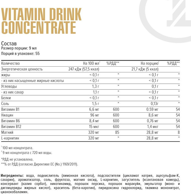 Рекомендации по применению: для получения одной порции смешайте 9 мл концентрата (используя мерный колпачок) с 720 мл воды. Для достижения желаемой концентрации можно варьировать количество жидкости.