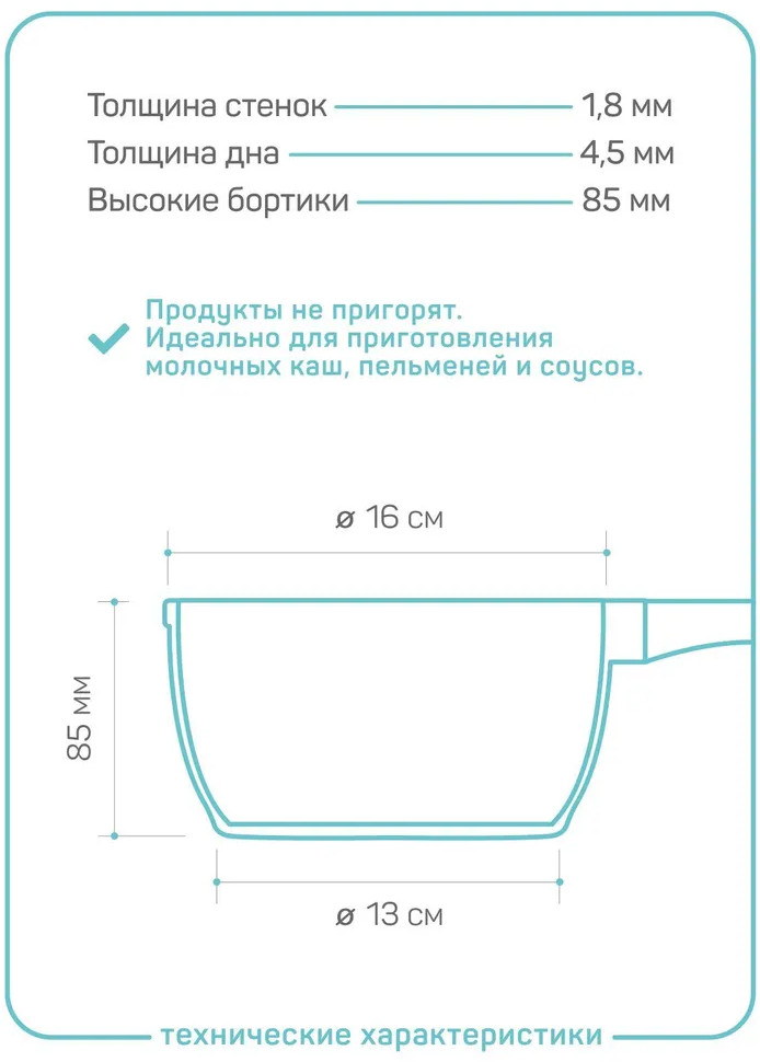 💳 Оплатить за товар можно при получении 🇰🇿 Есть бесплатная доставка по Казахстану от 1 дня 🎁 Копите бонусы с каждой покупки Серия: Шеф Андреа Ковш из литого алюминия со стеклянной крышкой. Благодаря высококачественному антипригарному покрытию «Pfluon» идеально подходит для приготовления молочных каш, пельменей, вареников, соусов, спагетти. Не нагревающаяся бакелитовая ручка с покрытием «Soft-touch». Подходит для всех видов плит, включая индукционную. Можно мыть в посудомоечной машине. |