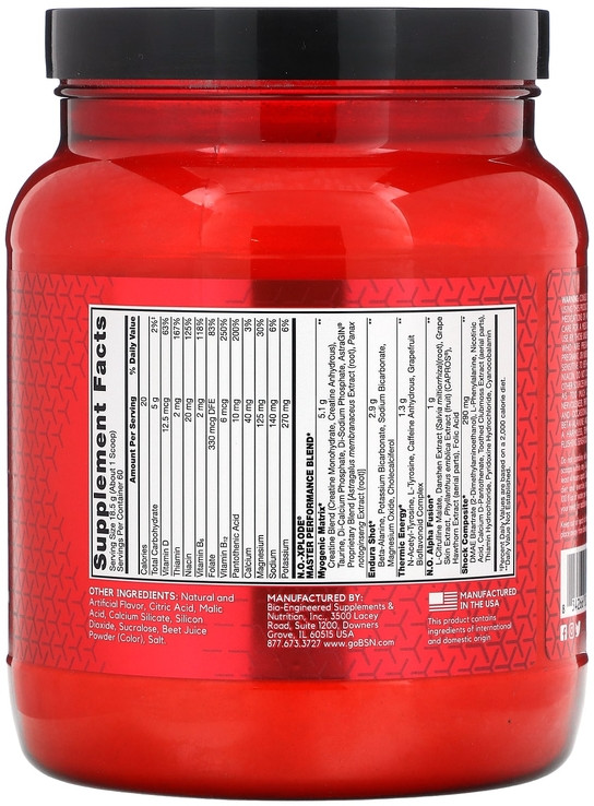 • BSN NO-Xplode 3.3 позволяет проводить продуктивные тренировки с максимальной отдачей, результатом которых станет наращивание качественной мышечной массы и прорисовка рельефа.