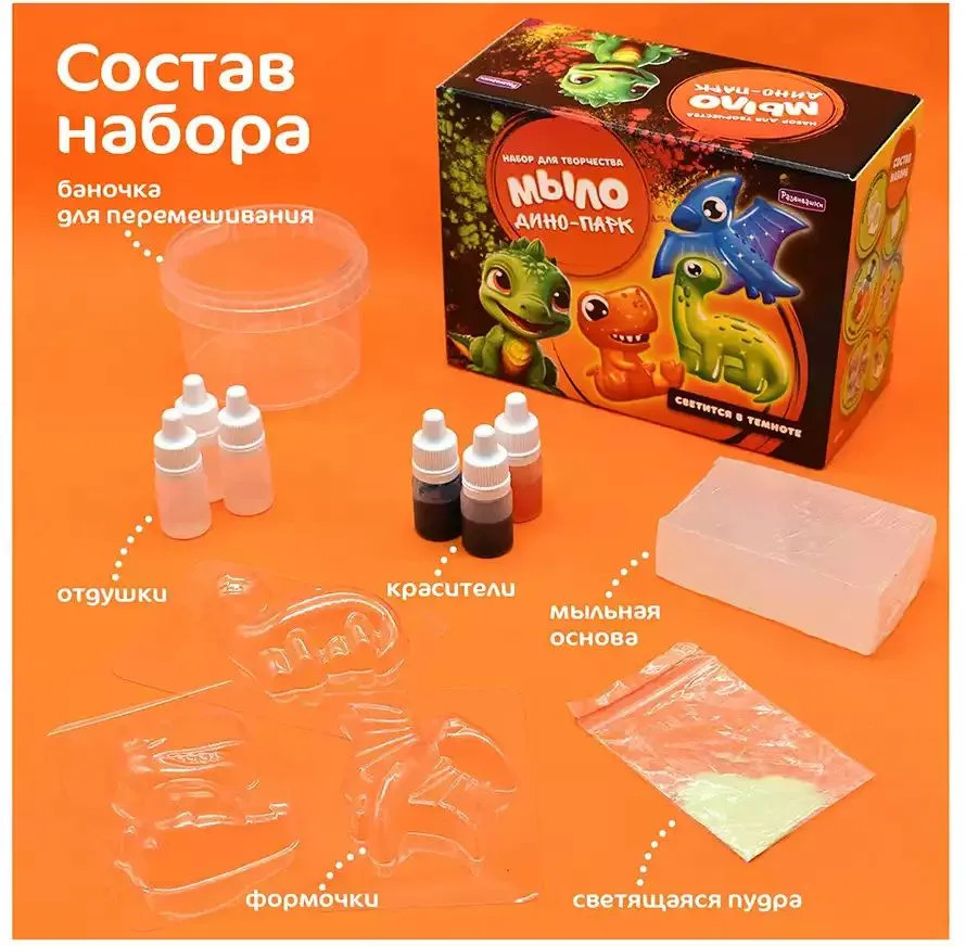 Развивашки Мыло своими руками «Дино-Парк»В данный момент этот товар отсутствует в продаже. Возможно, у нас найдется аналогичный или похожий товар здесь. Приучать ребенка мыть руки гораздо легче, если мыло выполнено в виде веселых фигурок. С помощью наборов для создания мыла своими руками можно сделать яркое цветное мыло с потрясающими ароматами. Можно научиться различать запахи фруктов и узнать, как они выглядят. Состав компонентов очень мягкий для кожи, а запахи — приятные, позитивно влияющие на настроение. |