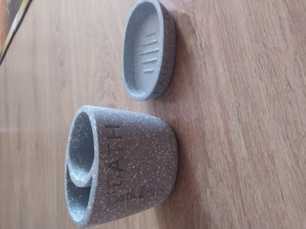 Симпатичный и устойчивый стаканчик. Снизу есть маленькие резиновые накладки против скольжения. Брала в комплекте с мыльницей.