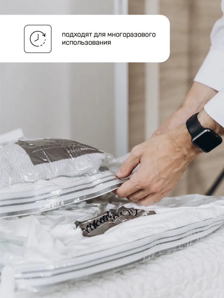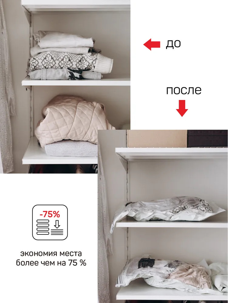 💳 Оплатить за товар можно при получении 🇰🇿 Есть бесплатная доставка по Казахстану от 1 дня 🎁 Копите бонусы с каждой покупки Серия: Впорядке Пакеты не имеют клапана. Вы можете создать эффект вакуум своими руками. Идеально для путешествий, где нет доступа к пылесосу. Вам не нужен насос. Достаточно выпустить лишний воздух руками. Обратите внимание, что среди фото есть схема использования таких инновационных пакетов. Вакуумный пакет для вещей и одежды экономит до 75% места в шкафу или чемодане. Спасительное изобретение для хозяек, ведь это означает, что у вас появляется дополнительный «второй» шкаф. Вакуумные пакеты для хранения и транспортировки вещей из полиэтилена высокой плотности помогут сэкономить пространство, сократить затраты на переезд, оптимально упаковать багаж. Кроме того, вакуумные пакеты надежно защищают вещи от пыли, грязи, грибка, посторонних запахов. Вакуумные пакет — залог порядка и простора в доме! Вакуумные пакеты из серии Впорядке оснащены замком Zip Lock и застёжкой с анатомической клипсой. |