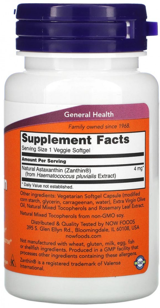 NOW Foods Бад «Astaxanthin»В данный момент этот товар отсутствует в продаже. Возможно, у нас найдется аналогичный или похожий товар здесь. Астаксантин — это каротиноид природного происхождения, который благодаря своей уникальной структуре обладает широким спектром антиоксидантных свойств. Поскольку астаксантин способен преодолевать гематоэнцефалический и гематоретинальный барьеры, он может обеспечить мощную антиоксидантную защиту непосредственно глазам, мозгу и нервной системе. Астаксантин Zanthin® был запатентован как препарат, который способен поддерживать здоровье сетчатки и глаз в целом. Научные исследования также показали, что астаксантин может помочь сформировать нормальную воспалительную реакцию. Поддерживает здоровье глаз, эффективный антиоксидант-каротиноид и так же помогает справляться с воспалениями. |