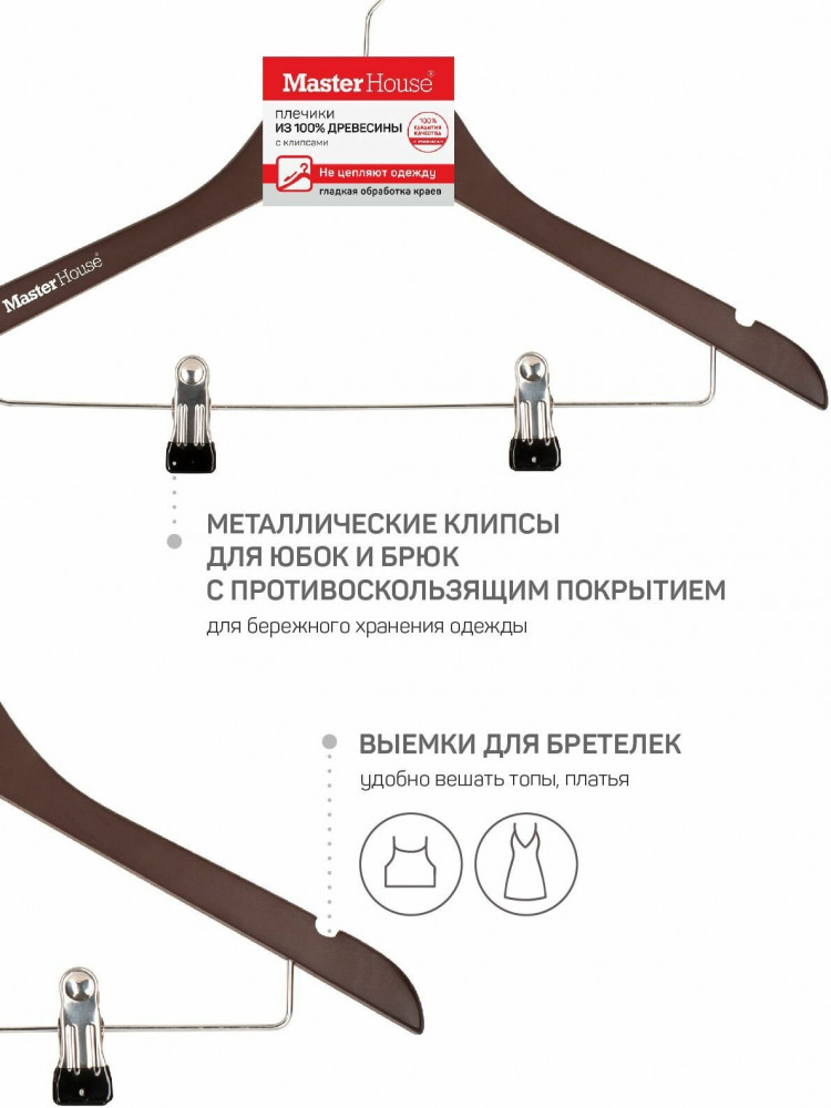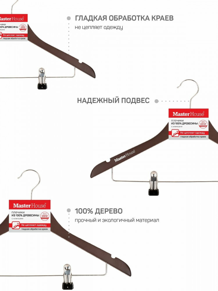 • натуральный и прочный материал: изготовлены из качественной древесины лотоса А класса, покрыты сверху белой краской. Древесина также обеспечивает прочность и долговечность плечиков, позволяя им выдерживать вес различных типов нарядов без значительных деформаций. Краска оберегает как тремпель, так и ткань от повреждений, обеспечивает дополнительную гладкость краев, при этом, одежда хорошо удерживается на аксессуар;