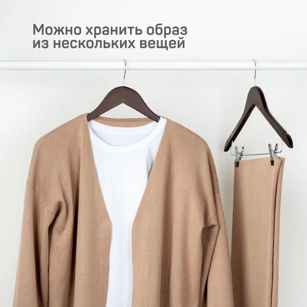 • перекладина: оснащены перекладиной без оплетки, которая предотвращает скольжение ткани с плечика. Это особенно полезно для вешания платьев, юбок, брюк и других длинных предметов гардероба, которые могут соскальзывать с обычных вешалок;