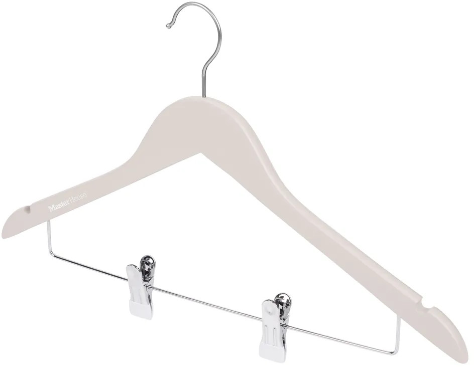 Деревянные прямые плечики с зажимами на металлической перекладине, подвижным хромированным крючком и выемками под бретели – незаменимый аксессуар в шкафу или гардеробной системе хранения. Удобный и функциональный элемент для организации одежды на платяной штанге для взрослых, подростков и детей.